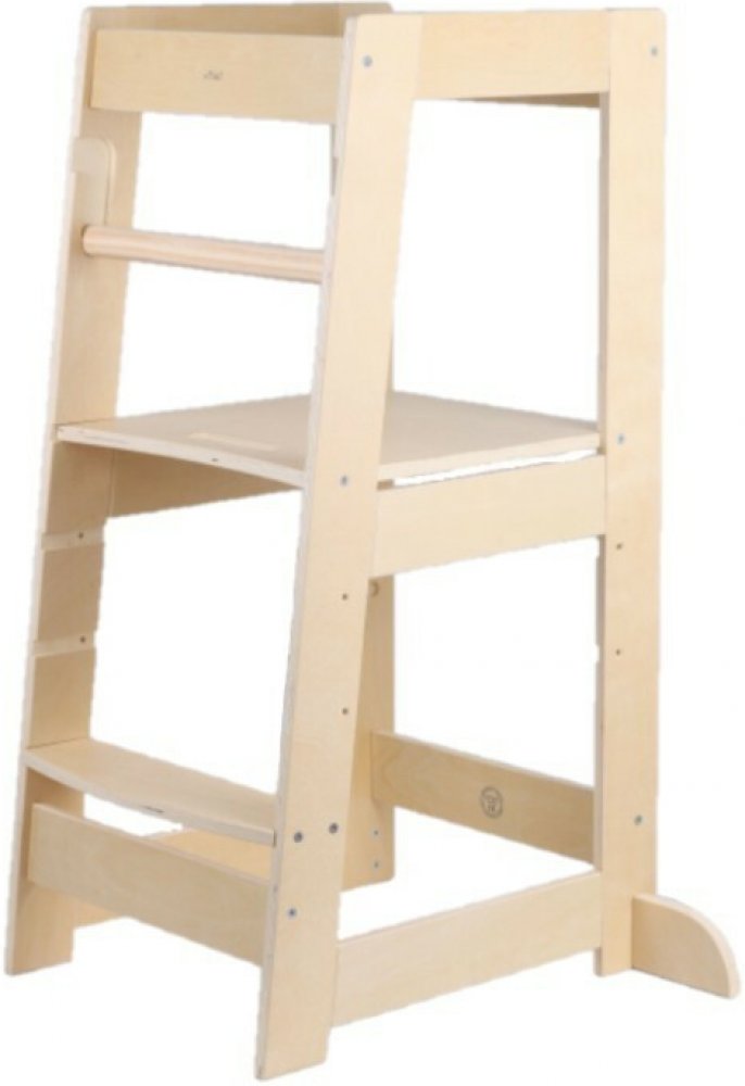 Učící věž z přírodní překližky je bezpečný a funkční kousek dětského nábytku, který podporuje samostatnost, rozvoj a objevování světa. Díky pevné konstrukci, stabilizačním nožkám a odnímatelné zábraně poskytuje dětem bezpečný prostor, odkud mohou pozorovat a zapojovat se do každodenních činností.