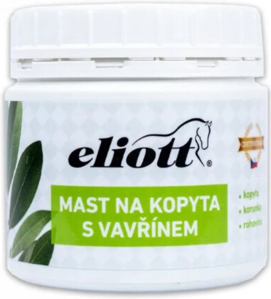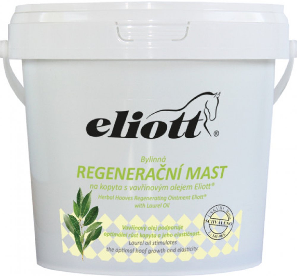 Bylinná regenerační mast na kopyta Eliott s vavřínovým olejem napomáhá obnovit pružnost a pevnost problémových kopyt. Díky vysokému podílu velmi kvalitního vavřínového oleje a panthenolu mast stimuluje růst kvalitnější rohoviny kopyta. Vavřínový olej má antibakteriální a antimykotické účinky. Aplikuje se zejména v korunkové oblasti.