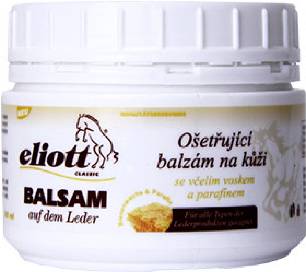 Ošetřující balzám na kůži Eliott®Ošetřující balzám na kůži se včelím voskem a parafínem. Je vhodný pro všechny typy kožených výrobků, které impregnuje, změkčuje, vyživuje, chrání a dodává jim elasticitu.