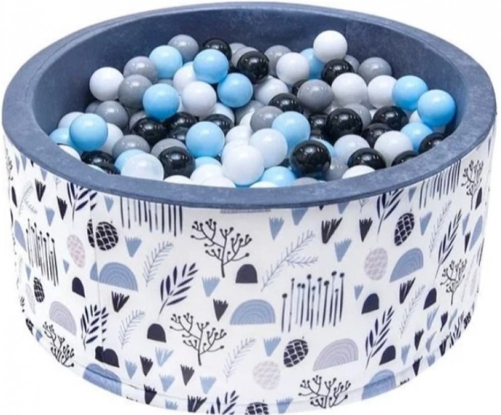 Dětská zábavná hračka v podobě suchého dětského bazénku naplněného míčky nejrůznějších barev se v poslední době těší obrovské oblibě u rodičů i dětí. Tento skvělý, měkký a bezpečný bazének zabaví Vaše děti na celé hodiny a pomocí hry jim pomůže rozvíjet jejich motorické dovednosti. Klučičí i holčičí suchý bazének v neutrálních barvách - V přírodě, s rozměrem 90 x 40 cm, vykouzlí úsměv na rtech každého dítěte. Přímo vyzývá děti k tomu, aby hupsly do 200 ks barevných míčků. V měkkém bazénku s míčky si mohou pod dohledem dospělého užít spoustu zábavy už děti od 6 měsíců. Mohou se pokoušet míčků ze zdravotně nezávadného materiálu dotknout, postrčit je a sledovat, kam se budou kutálet, pást koníky. I starší děti si v suchém bazénku užijí spoustu legrace. Mohou se ve vrstvě míčků (balonku) převalovat, schovávat se, klouzat se, skákat a dovádět, rozhazovat míčky po okolí. Bazének je vyroben z velmi pružného, měkkého, nedeformovatelného a netoxického materiálu, vhodného pro děti. Skvělé je, že dětský bazének není jen úžasnou hračkou, ale prostředkem k rozvoji jemné a hrubé motoriky, učí rozpoznávat tvary a barvy. Děti se pokouší míčky uchopit, posunout, míčkem hodit, snaží se pohybovat ve vrstvě míčků a snaží se udržet rovnováhu, jsou neustále v pohybu. Technické parametry: Rozměr: 90 x 90 x 40 cm (délka x šířka x výška). Tloušťka stěny: 5 cm. Tloušťka podlahy: 3 cm. Materiál: polyuretanová pěna a velurová tkanina. Barva bazénku: vnitřek bazénku šedý, vnější strana bílá s přírodním motivem (stromy, větvičky, šišky). Počet míčků: 200 ks. Velikost míčku: 6 cm (průměr). Barva míčků: černá, šedá, modrá a bílá (barvy míčků nelze kombinovat, barevné provedení a počet jednotlivých barev je dán výrobcem). Certifikáty: OEKO-TEX® Standard 100, CE, EN 71. Vhodný pro děti od 6 měsíců (používat pod dohledem dospělého). Cena zahrnuje suchý bazén a 200 ks míčků s certifikací. Vyrobeno pro ELIS DESIGN v EU.