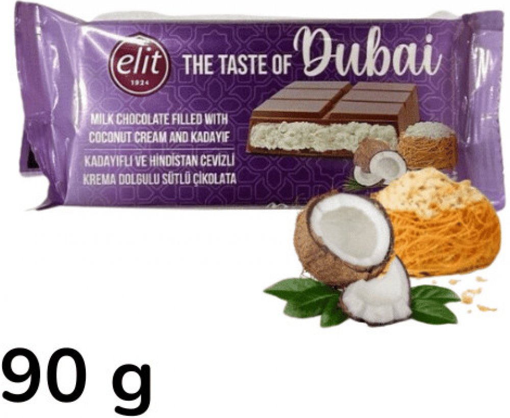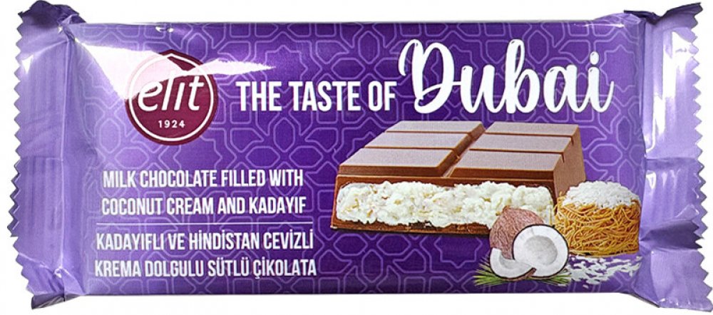 Složení: mléčná čokoláda (cukr, sušené mléko, kakaové máslo, kakaová hmota, emulgátor slunečnicový lecitin, aroma vanilin), kokosový krém a kadayif (cukr, palmový tuk, sušené mléko, kokos, kadayif (pšeničná mouka, voda, sůl), emulgátor slunečnicový lecitin, aroma vanilin).