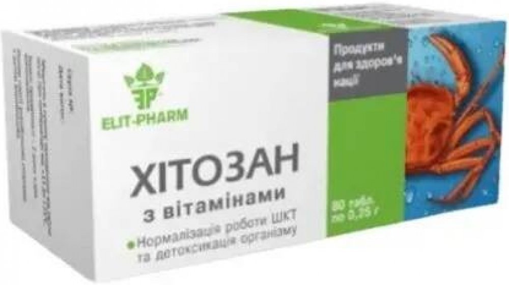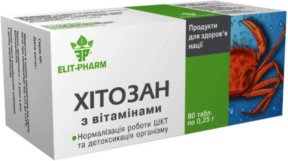 Složení 15 tablet: chitosan (výrobek z korýšů) 3 g, plnidla: škrob, laktóza (výrobek z mléka), protispékavá látka: stearát vápenatý, vitamín E (DL-alfa-tokoferyl-acetát) 15 mg (tj. 125 % RHP*), vitamín A (retinyl-palmitát) 1 245 µg (155 % RHP), vitamín D3 (cholekalciferol) 4,95 µg (198 % RHP).