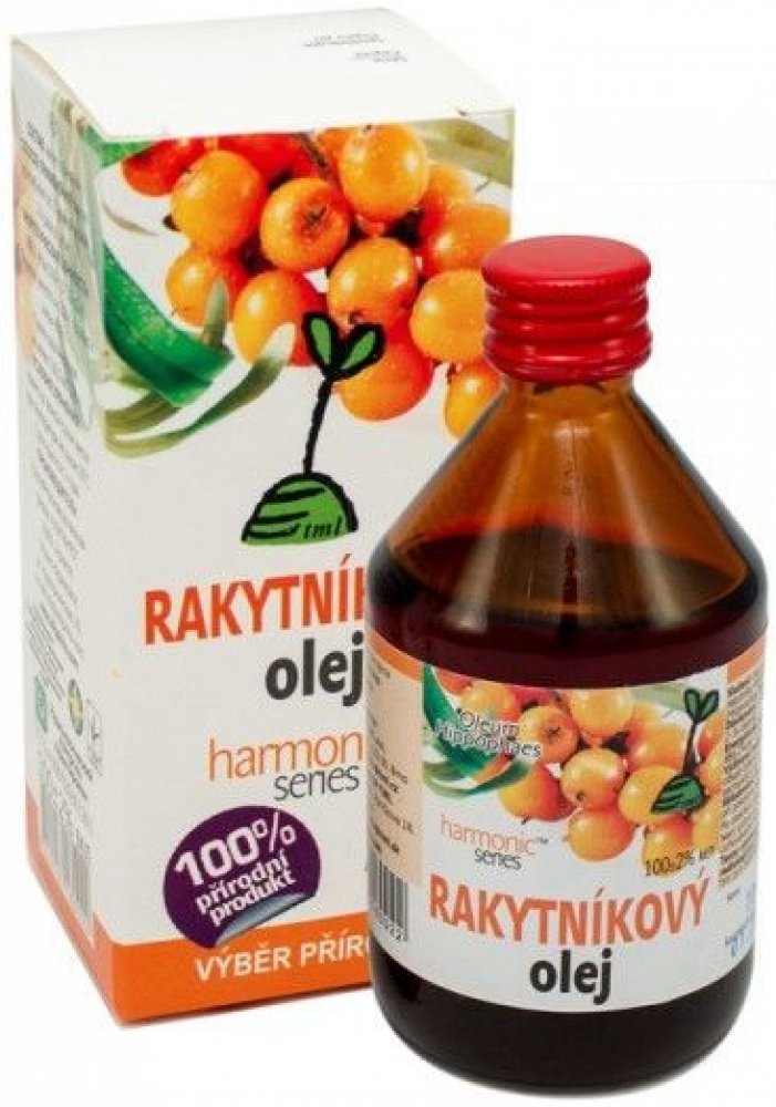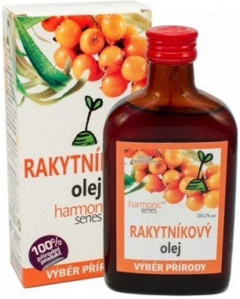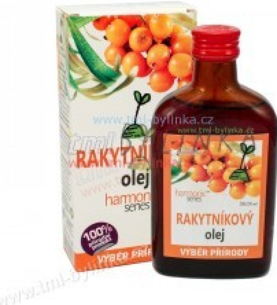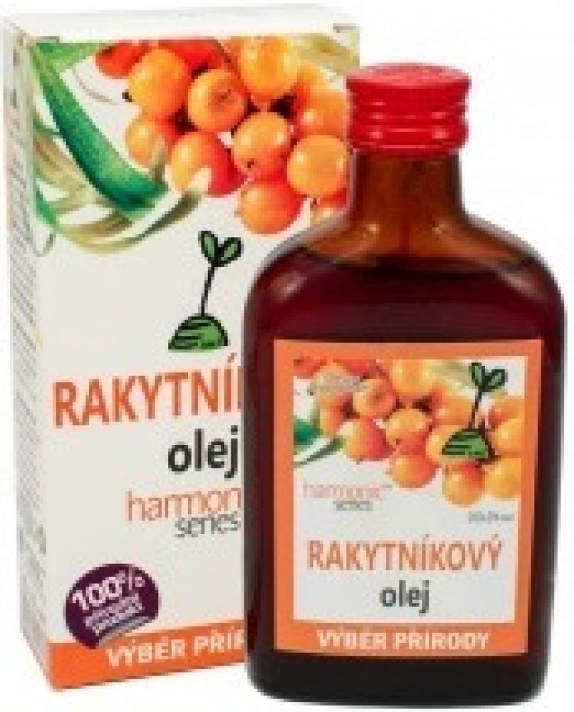 Rakytníkový olej se získává z tmavě oranžových plodů rostliny rakytníku řešetlákového. Rakytníkový olej je přírodním koncentrátem celé řady vitaminů a biologicky aktivních látek. Obsahuje zejména karotenoidy, vitamin E a OMEGA 3, 6, 7 a 9 nenasycené mastné kyseliny. Proto působí pozitivně na kardiovaskulární systém.