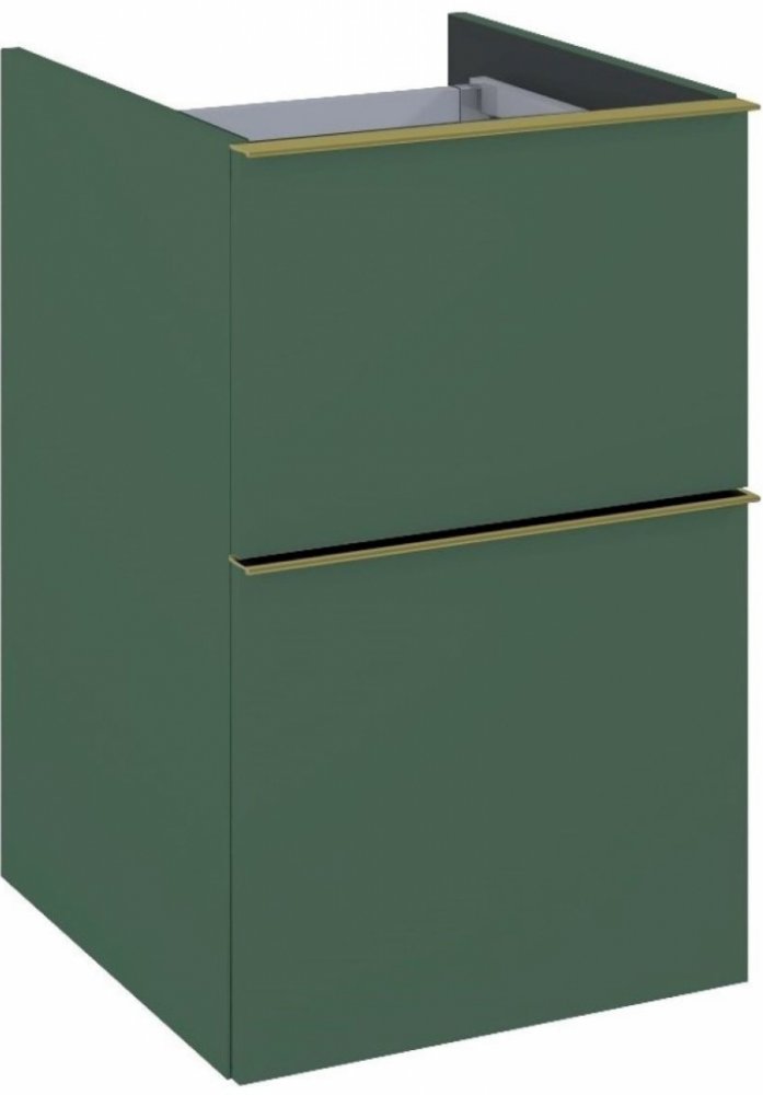 Vzhled nebo krása bez nadbytku. Silné stránky kolekce: - modernost, styl řady Look je synonymem dnešních trendů - dokonalá estetika, která se hodí do každého interiéru - nadčasový design - modularita, která poskytuje neomezené možnosti při navrhování koupelny - praktičnost, díky níž nebude používání koupelny nikdy tak příjemné Technický popis: - smontovaný výrobek - barva: tmavě zelená lakovaná, matný povrch - přední strana a skříňka z 16 mm laminované desky - výsuvy s tichým zavíráním, plný výsuv - bezpečnostní lišty na obou zásuvkách - kovové boky zásuvek - 2 nastavitelné kovové závěsy s celkovou nosností 240 kg - bez úchytek - nutno dokoupit zvlášť Cena je uvedena pouze za komodu. Úchyty je třeba zakoupit zvlášť.