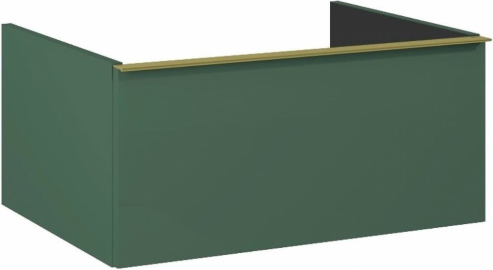 Look, neboli krása bez nadbytku. Přednosti kolekce: - modernost, styl série Look je synonymem dnešních trendů, - dokonalá estetika, která se hodí do každého interiéru, - nadčasový design, - modularita, která poskytuje neomezené možnosti uspořádání koupelny, - praktičnost, díky které bude používání koupelny příjemnější než kdykoli předtím. Technický popis: - smontovaný produkt - barva: tmavě zelená lakovaná, matný povrch - čelo a korpus vyrobené z 16 mm laminované desky - soft-close vodicí lišty, plný výsuv - kovové boky zásuvky - 2 nastavitelné kovové závěsy s celkovou nosností 240 kg - komoda bez úchytu - nutnost zakoupení na vlastní náklady - komoda plní funkci skříňky pod umyvadlo při použití desky, umyvadla na desku a sifonu šetřícího místo Cena se vztahuje pouze na komodu. Úchyt je nutné zakoupit samostatně.