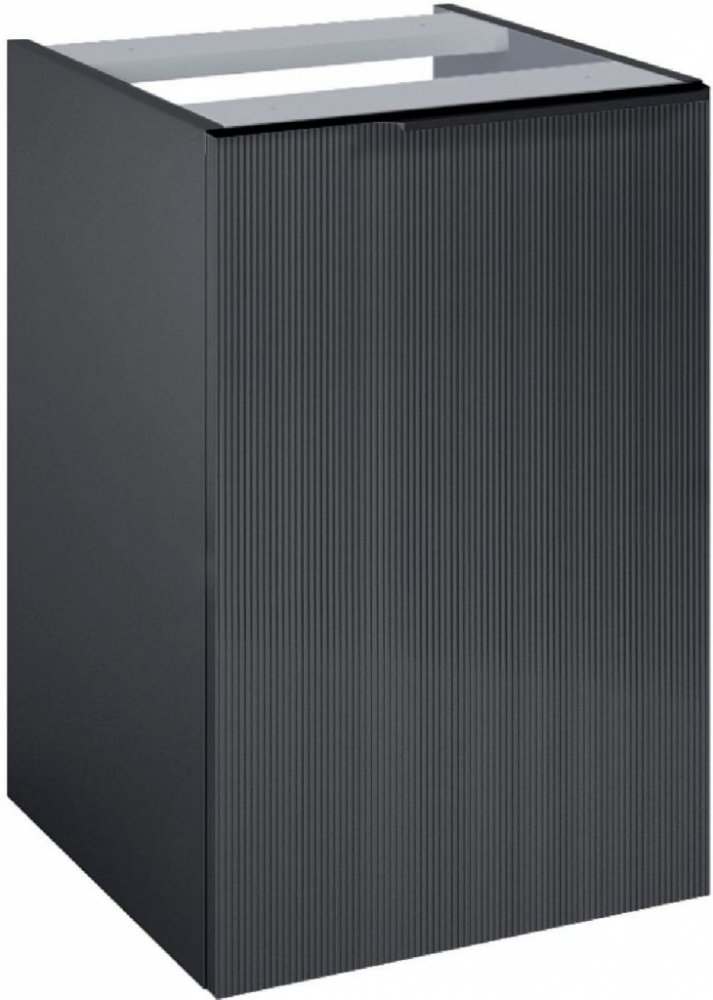Kolekce Soho, inspirovaná metropolitním stylem, je avantgardním návrhem pro moderní a stylové koupelny. Skleněná, rýhovaná čela dodávají nábytku neobvyklý vzhled, mimořádně zpestřují a zdobí prostor. Perfektně tvarovaná, hranatá úchytka skvěle doplňuje profil skříňky. - rozměry: 40x52,4 cm - výška: 63,5 cm - smontovaný výrobek - čela a korpusy z laminované desky o tloušťce 16 mm - přední strana krytá drážkovaným sklem - 1 zásuvka s nákladním košem - nákladní koš s nosností až 20 kg - výsuvy s měkkým zavíráním a plným výsuvem - 2 nastavitelné kovové závěsy s celkovou nosností 240 kg - barva: černě lakovaná, matný povrch Úchyty je třeba dokoupit zvlášť.