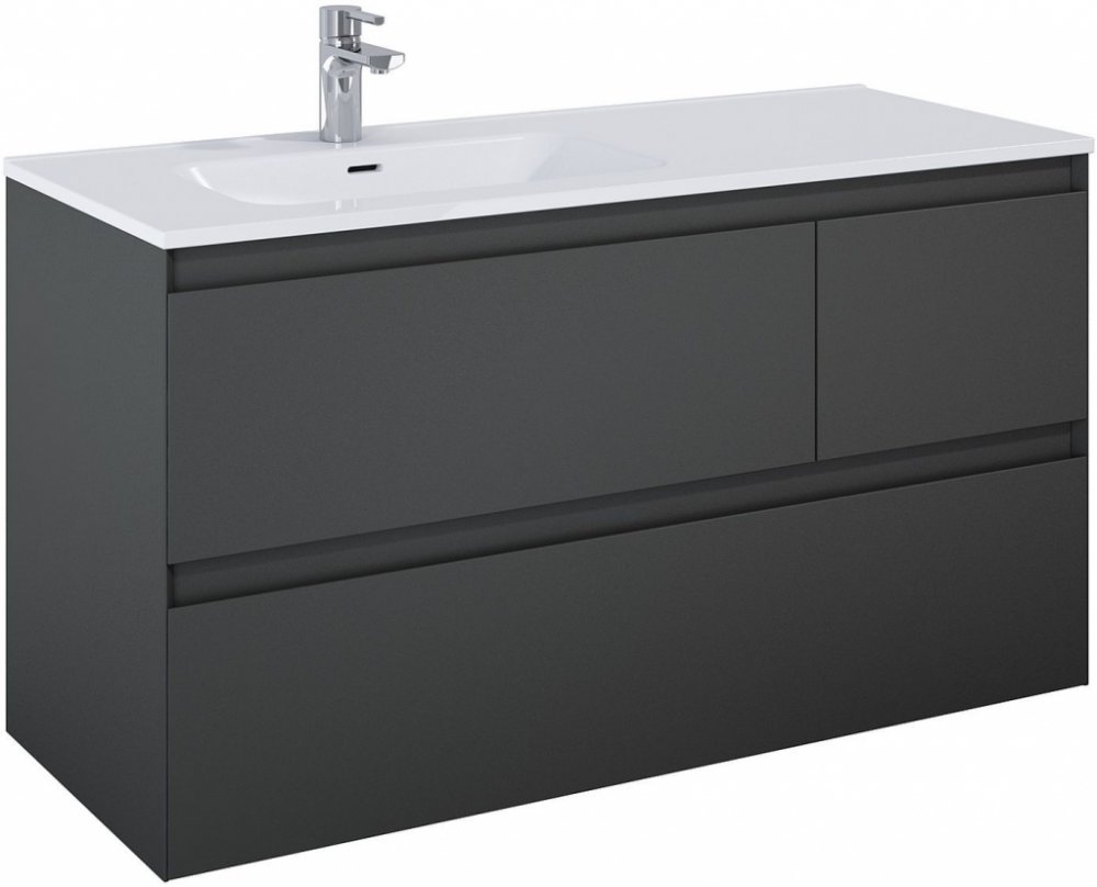 - levá verze- výška: 63,5 cm - šířka: 120 cm - hloubka: 45,8 cm - ze 3 zásuvek s kovovými boky - zásuvky s plným výsuvem a systémem tichého dovírání - horní zásuvky s asymetrickým dělením - čelo a korpus z lakované laminované desky - frézované úchyty profilované pod úhlem 45°. - vhodné pro kombinaci s pracovními deskami ElitStone - hmotnost: 48 kg - barva: antracitový mat Cena je uvedena za skříňk...