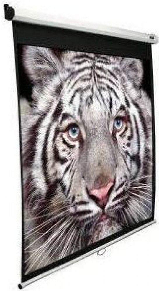 Manuální plátno typu roleta s úhlopříčkou 120" a bílou konstrukcí. Vhodné pro projektory se standardní projekční vzdáleností. Plátno má zvýšený vrchní černý okraj 24" (cca. 61 cm).