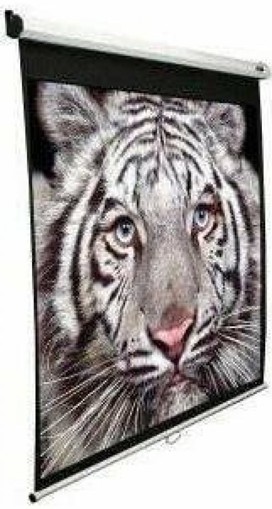 Manuální plátno typu roleta s úhlopříčkou 120" a bílou konstrukcí. Vhodné pro projektory se standardní projekční vzdáleností.