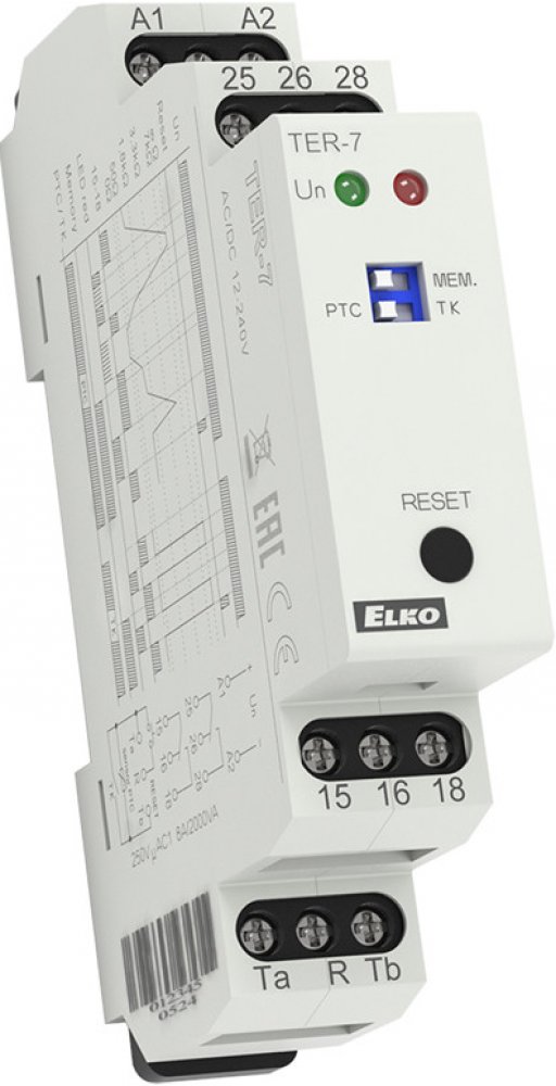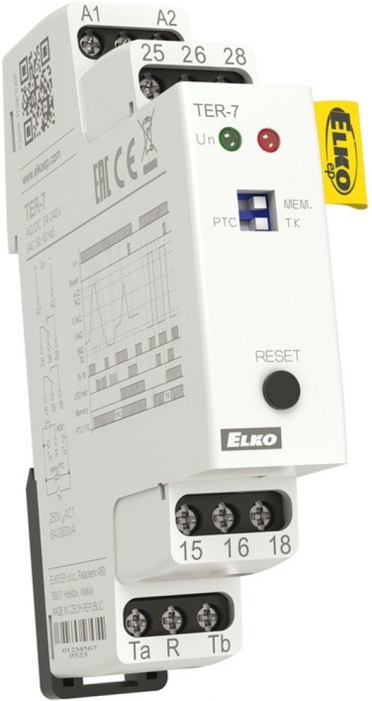 Termostat s hlídáním teploty vinutí se používá jako ochrana motorů. POPIS Funkce hlídání zkratu nebo odpojení senzoru. Při chybovém stavu je relé zablokováno až do zásahu obsluhy (stisk tlačítka RESET). Jako snímací prvek se používá senzor PTC zabudovaný ve vinutí motoru jeho výrobcem, popř. externí PTC senzor. TECHNICKÉ PARAMETRY Univerzální napájecí napětí AC/DC 24 - 240 V. Výstupní kontakt: 2x přepínací 8 A (AgNi). V provedení 1-MODUL, upevnění na DIN lištu.