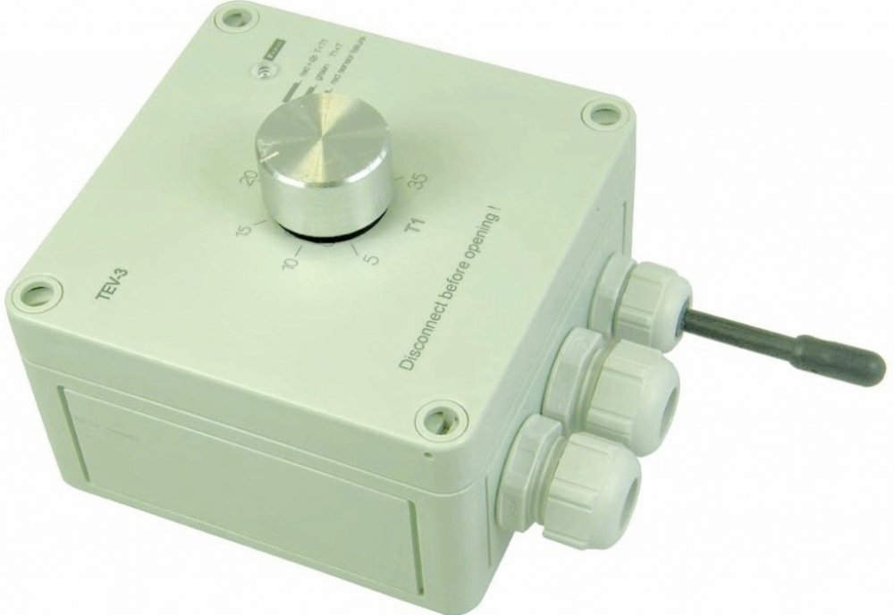 Jednoúrovňový termostat se používá pro regulaci topení (nebo řízení chlazení) v náročnějších prostorách jako je venkovní prostředí, vlhkost, prašnost aj. POPIS Nastavitelný teplotní rozsah od +5…+35°C. Ovládací prvky jsou umístěny přímo na krytu. Funkce hlídání zkratu nebo přerušení senzoru. Na přání lze teplotní rozsah upravit. TECHNICKÉ PARAMETRY Napájecí napětí AC 230 V. Výstupní kontakt: 1x přepínací 16 A (AgNi). V provedení ve vodotěsné krabici s krytím IP65, která dovoluje venkovní instalaci s vestavěným senzorem TC-0.