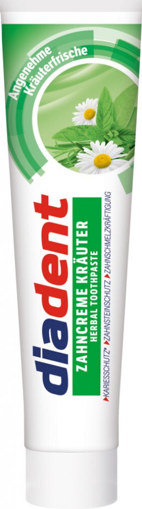 Elkos Kräuter-Mix 3 zubní pasta s bylinkami důkladně vyčistí Vaše zuby a ochrání je před napadajícími kyselinami. Bylinkové aroma zajistí extra dlouhodbě svěží dech.