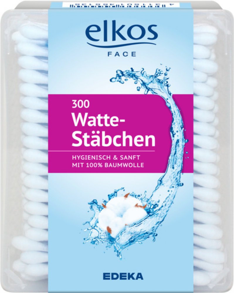 Elkos Vatové tyčinky 300 ks K péči o naše tělo patří i čistění uší a různé drobné úkony. Tyto procedury postupuje celá rodina. Nejvhodnější pomůckou jsou vatové tyčinky Elkos. 100%25 bavlna J emné a důkladné čištění S obvzláště jemnými vatovými hlavičkami znovu-uzavíratelná krabička vhodné pro kosmetiku a pro péči o dítě Vlastnosti: Jemná struktura vaty s mikrovláknem umožňuje šetrnou péči, dlouhá vlákna bavlny pak zajistí pevné namotání dostatečného množství vaty na tyčince, plastové tyčinky jsou pružné a odolávají tlaku, takže se nelámou a zaručují bezpečnou každodenní hygienu. Jak používat: Používejte podle potřeby. O značce Elkos Kosmetika a drogerie značky Elkos patří k těm nejkvalitnějším na Německém trhu. Jedná se o vlastní značku koncernu Edeka. V sortimentu Elkos nalezneme vše potřebné pro rodinu. Elkos sází především na kvalitu, všestrannost a dostupnost sortimentu. To vše se snaží zákazníkům nabízet za velmi rozumné ceny. Mezi běžnými zákazníky je tato značka v Německu velmi rozšířena a oblíbena. Není proto divu, že se jedná v současné době o jednu z nejrychleji rostoucích značek v oblasti drogerie a kosmetiky na německém trhu.