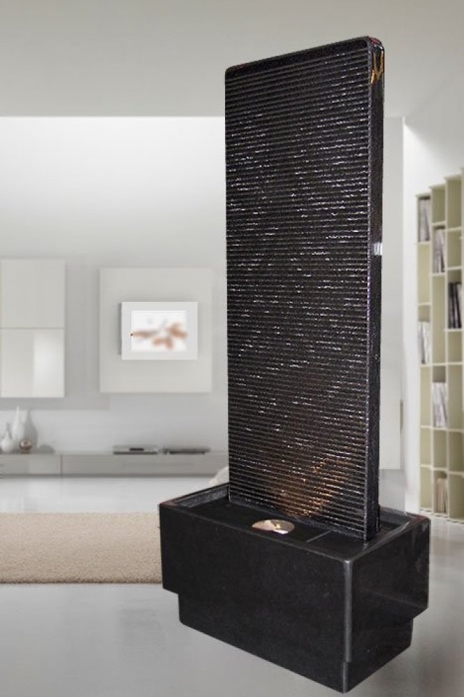 Fontána se skládá ze dvou částí: vodní stěna nalepená na základové desce, po které voda z obou stran jemně stéká dolů, a nádrž ze stejného deskového materiálu, která slouží jako nádrž na vodu. Zde je ve vaně umístěna pumpa a snadno přístupný LED světlomet. Jelikož cirkulující voda se při suchém vzduchu v místnosti rychle vypařuje, vodu je třeba pravidelně doplňovat.
