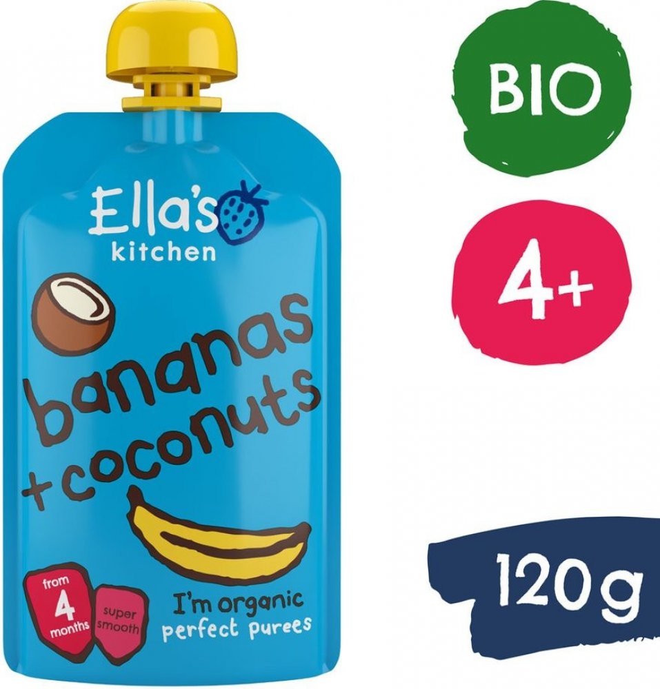 Poctivá kapsička z banánů, které děti milují! Dokonalou konzistenci zajišťuje pouze kokosové mléko, ke kterému už nebylo zapotřebí přidávat vůbec nic. Snad jen kapičku citronové šťávy, aby i chuť byla víc než dokonalá. Textura je vyladěná tak, aby kapsičku mohli mlsat malí jedlíci od ukončeného 4. měsíce a dobře se jim přecházelo z výhradního kojení na pevnou stravu.