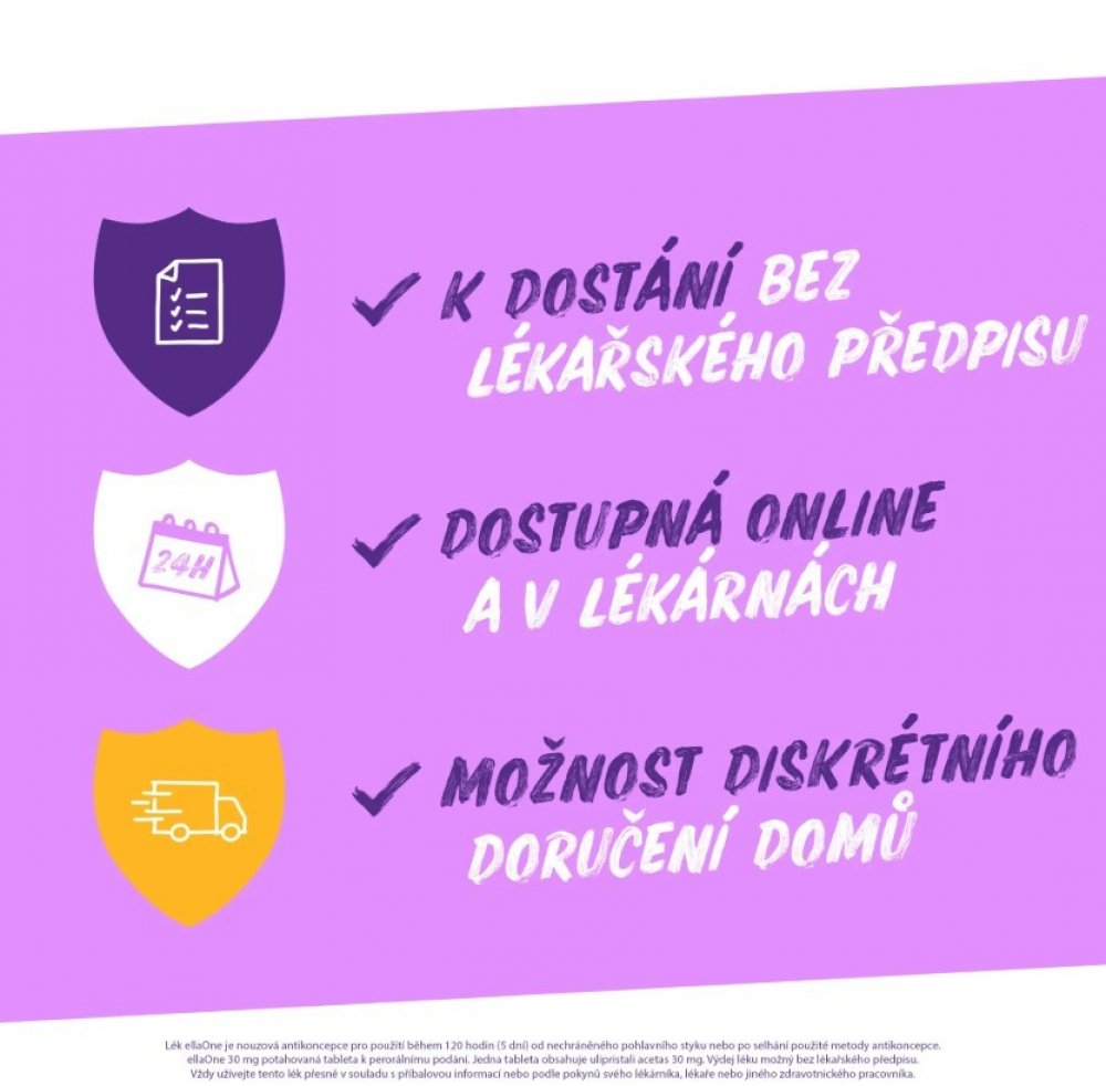 Přípravek ellaOne je nouzová antikoncepce snižující možnost otěhotnění po nechráněném pohlavním styku. Lze ji použít až do 120 hodin (5 dní) po nechráněném pohlavním styku či po selhání obvyklé antikoncepční metody. Nejúčinnější podání je do 24 hodin. Mechanismus účinku je blokáda či posunutí ovulace potlačením vzestupu luteinizačního hormonu (LH) a tím zabrání případnému oplodnění vajíčka. ellaOn...