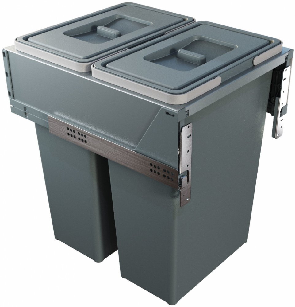 Vestavné výsuvné odpadkové koše Elletipi produktové řady Block 2.0 V každé moderní kuchyni je důraz na čisté a jasné linie. Všechny potřebné kuchyňské doplńky a zařízení jsou ukryty někde uvnitř skříněk, aby nerušily dojem z celkového designu kuchyně. Proto se stalo samozřejmostí, že i odpadkové koše jsou ukryty uvnitř kuchyňské linky. A jelikož do pořádné kuchyně patří i třídění odpadu vzniklého při provozu kuchyně, jsou často potřeba ne jedna, ale třeba i čtyři nádoby. A aby byly nádoby vždy při ruce, je praktické, pokud se použije systém, kdy vysunutím čela skříńky se vysune celá sestava košů a všechny nádoby jsoun lehce dostupné. Kvalitní materiál je samozřejmostí Základní konstrukce koše (rám) je vyrobena z extremně pevného materiálu - pozinkovaná ocel práškově lakovaná s příměsí epoxidu. Samotné ocelové pojezdy značky Hettich mají podpěry ze skelných vláken a velmi dlouhou životnost. Samotné nádoby na odpad včetně vík, jsou vyrobeny z kvalitního a plně recyklovatelného materiálu. Široká nabídka rozměrů a kapacit nádob A protože každá kuchyň je jiná, řada Block 2.0 je vhodná do šíře skříněk 30, 34, 40, 45, 50 a 60 cm. Hloubka skřínky pak musí být minimálně 43 cm, nebo 48 cm. Nádoby na odpad jsou pak ve variantách 8, 12 nebo 35 litrů. Systém 3D seřízení Celý systém Block 2.0 byl navržen tak, aby jeho instalace byla co nejrychlejší a nejsnadnější. Systém 3D nastavení je určen pro přesnou instalaci ve všech třech rovinách. S balením rámu a odpadkových nádob obdržíte též vodicí systém Hettich a ocelové spojky pro připevnění čela skříňky. Systém Hettich disponuje funkcí Soft-Closing, který dokáže zbrzdit sestavu košů při rychlém zasunutí celéhu šuplíku a dosednutí je tzv. měkké. Montáž zvládnete sami, ale je samozřejmě praktičtější, pokud bude sestavu do kuchyňské linky montovat truhlář či výrobce kuchyńské linky. Celá sestava je dostatečně pevná a robustní a bez obtíží unese všechny nádoby naplněné odpadem. Parametry Objem nádob: 35+35 litrů Výška: 53,5 cm Šířka: 41,3 cm Hloubka: 47,8 cm