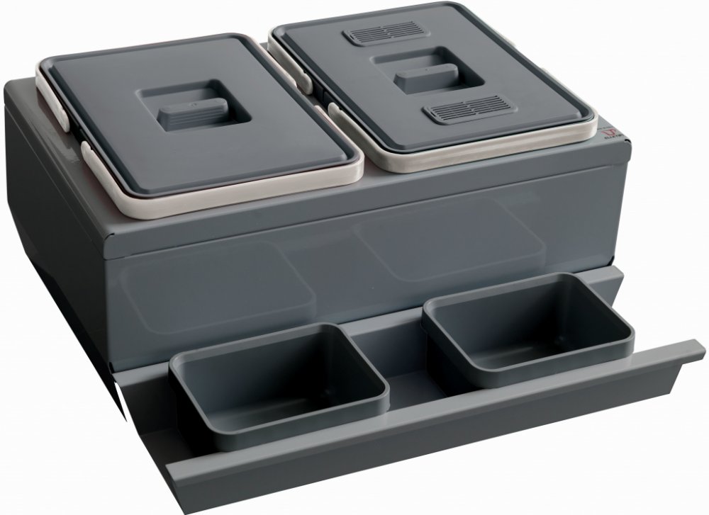 Produktová řada Compo Evo je určena do výsuvných zásuvek. Díky maximální výšce 22 cm jsou koše určeny hlavně do míst pod dřezem. Jsou ideální pro třídění odpadu. Praktické jsou též doplňkové misky v přední části koše, kam můžete uložit třeba tablety do myčky či jiné čistící prostředky.Koš dokážete sestavit sami svépomocí za pár minut.