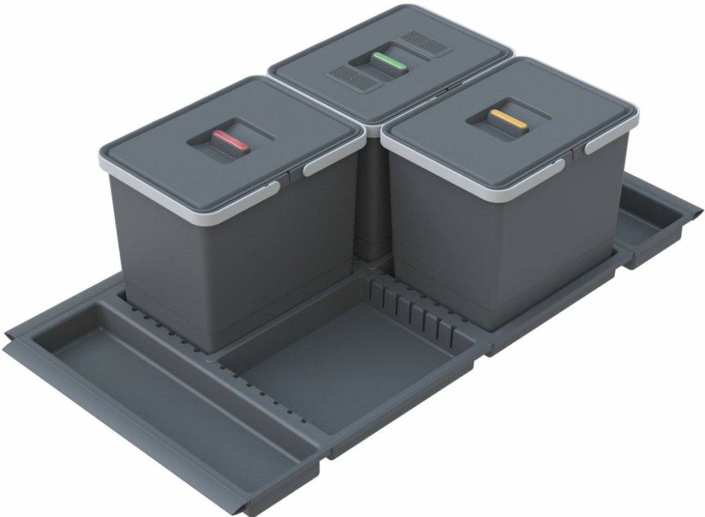 Vestavný odpadkový koš Metropolis PTC28 10050 7F pro montáž do výsuvných zásuvek kuchyňských linek Sami si podle velikosti své výsuvné zásuvky zvolíte, kolik odpadkových nádob a jakého objemu potřebujete ve své kuchyni. Modulární systém snadno sestavíte za pár minut a budete překvapeni, jak je celý systém variabilní. A celou sestavu košů pak můžete doplnit v rámci příslušenství o různé držáky a praktické plastové misky. Se sestavou košů Metropolis získáte kvalitní systém na třídění odpadu. Jak výsuvné odpadkové koše Metropolis fungují? Všechny koše jsou umístěny v plastových flexibilních miskách a pomocí děličů je každý koš zaaretován ve své správné poloze. Plastové misky jsou pouze položeny na dně vysouvací zásuvky. Při vytažení zásuvky je tak ke každé nádobě dobrý přístup a to nejen při ukládání odpadu, ale také při výměně plného sáčku na odpad či vyjmutí celé nádoby mimo zásuvku Jak vám výsuvné odpadkové koše Metropolis usnadní třídění odpadu? Získáte prostor pro třídění až 4 druhů odpadu. Nádoby maji objem 6 až 15 litrů. Každý koš je vybaven víkem a vždy jedno víko je ještě osazeno filtrem proti zápachu. Filtr proti zápachu lze prát či vyměnit za nový. Přiloženými samolepkami pak lze každé víko barevně odlišit, aby jste vždy věděli, kam který odpad uložit Každý koš lze rozdělit na dva Plastové odpadkové nádoby mají na horní straně výřez, pomocí kterého lze do jedné nádoby umístit dva sáčky a tím si rozšířit počet druhů tříděného odpadu. Tuto funkci doporučujeme hlavně u větších nádob ( 12 a 15 litrů ) Snadná změna velikosti jednotlivých nádob Celý systém je modulární a pokud v budoucnu zjistíte, že vám stávající sestava košů nevyhovuje, můžete si dokoupit jiné velikosti košů a vík. Pouze přesunutím děliče vytvoříte v plastové základně prostor pro jiný koš. Všechny koše maji rukojeti, které slouží nejen k manipulaci s košem, ale k upevnění sáčku na odpad na horním okraji koše. Příslušenství k produktové řadě Metropolis Typovou řadu košů Metropolis lze rozšířit o různé chromované drátěné držáky nebo stojany plastových misek, které lze například použít pro čistící prostředky či třeba tablety do myčky. Umístění těchto předmětů v blízkosti košů je praktické a také se vyhnete stavu, kdy tyto chemické prostředky jsou v blízkosti potravin Ke každému koši víko Ke každému koši obdržíte víko a vždy jedno víko v celé sestavě je osazeno filtrem proti zápachu. Filtry lze buď měnit nebo je možné ho až 50 x vyprat. Koš je zkonstruován tak, aby i při použití víka byly rukojeti funkční a veškerá možná manipulace s košem byla možná při příklopeném víku Další výhody, ze kterých budete mít radost celý systém je uvnitř skříňky a odpadkové koše nebudou nikde překážet velice jednoduchá a snadná údržba velice jednoduché na montáž - zvládnete svépomocí za pár minut možnost doplnění o další nádoby barevné rozlišení vík nádob podle jednotlivých druhů odpadu vyrobeno z kvalitního recyklovatelného materiálu možnost třídění odpadu na jednom místě moderní design vhodný do všech kuchyní Parametry výrobku PTC28 10050 7F