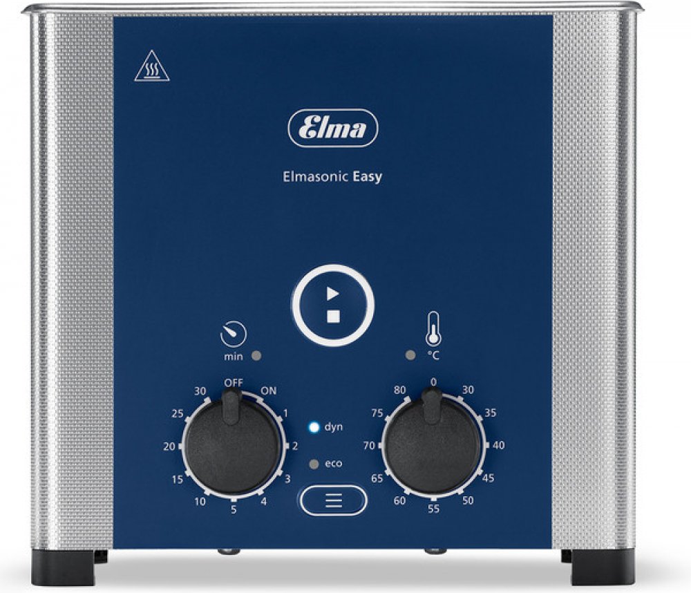 . . Uživatelsky přívětivé a energeticky úsporné ultrazvukové čisticí jednotky řady Elmasonic Easy s frekvencí 37 kHz jsou vhodné pro využití např. v oblasti kovoobrábění, v laboratořích, dílnách, ateliérech a při čištění průmyslových součástí. Jsou ideální i pro začátečníky. . . V kombinaci s vhodnou čisticí chemií lze odstranit oleje a tuky, pryskyřici, zbytky lepidel, brusné a lešticí pasty, třísky, tavidla a organické nečistoty. . . Přehledný a intuitivní ovládací panel: snadné nastavení doby a teploty čištění, zapnutí a vypnutí procesu čištění a změna režimů ultrazvuku. Jednotka vydává vizuální a akustické signály při dosažení času čištění, teploty a chyb.. . Dva režimy:. - režim Eco: tišší a šetrnější čištění, prodlužuje životnost vany.. - dynamický režim: optimalizované rozložení zvukového pole v čisticí lázni proti nejodolnějším nečistotám.. . Předvolba doby čištění: dobu čištění lze nastavit v rozmezí od 1 minuty do 30 minut nebo v nepřetržitém provozu (nepřetržitý ultrazvukový provoz max. 6 hodin).. . Automatické vypnutí jednotky po osmi hodinách bez provozu. Přístroj přejde do pohotovostního režimu. Po tomto bezpečnostním vypnutí nebo případném výpadku napájení lze jednotku znovu aktivovat stisknutím tlačítka nebo posunutím otočného přepínače.. . Pouzdro odolné proti stříkající vodě a čisticí miska z nerezové oceli. . Vložku do koše objednávat zvlášť. . platí pouze pro zařízení s ohřevem: regulace teploty nastavitelná v krocích po 5 °C od 30 do 80 °C (teplotní tolerance -5 / +8 °C). . Automatické vypnutí ultrazvukového provozu při teplotě lázně > 90 °C. . boční uzavírací ventil pro vyprázdnění čisticí nádrže přes výpusť na zadní straně zařízení (Elmasonic Easy 60 H až 300 H). . Regulace teploty nastavitelná v krocích po 5 °C v rozsahu 30 - 80 °C (teplotní tolerance -5 / +8 °C). . Automatické vypnutí ultrazvukového provozu při teplotě lázně > 90 °C. . . pro dosažení optimálních výsledků čištění vyberte správný čisticí prostředek dle Vašeho použití: . . . . Čisticí prostředky pro ultrazvukové čističky. . . . . . .