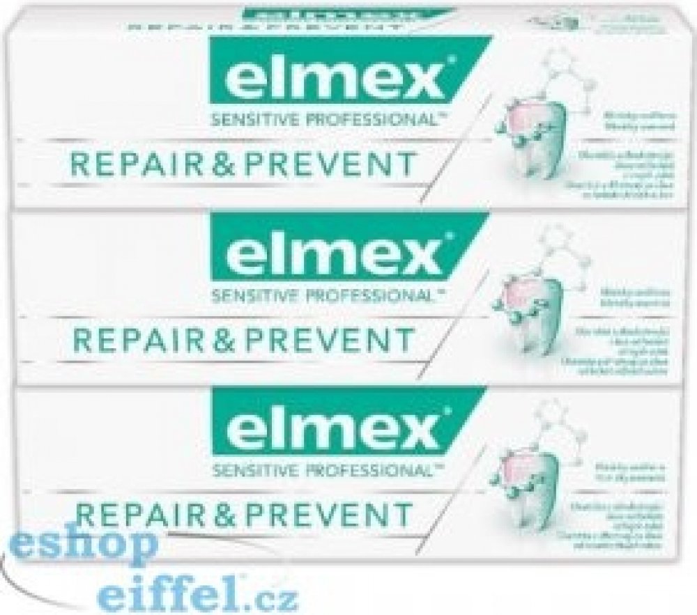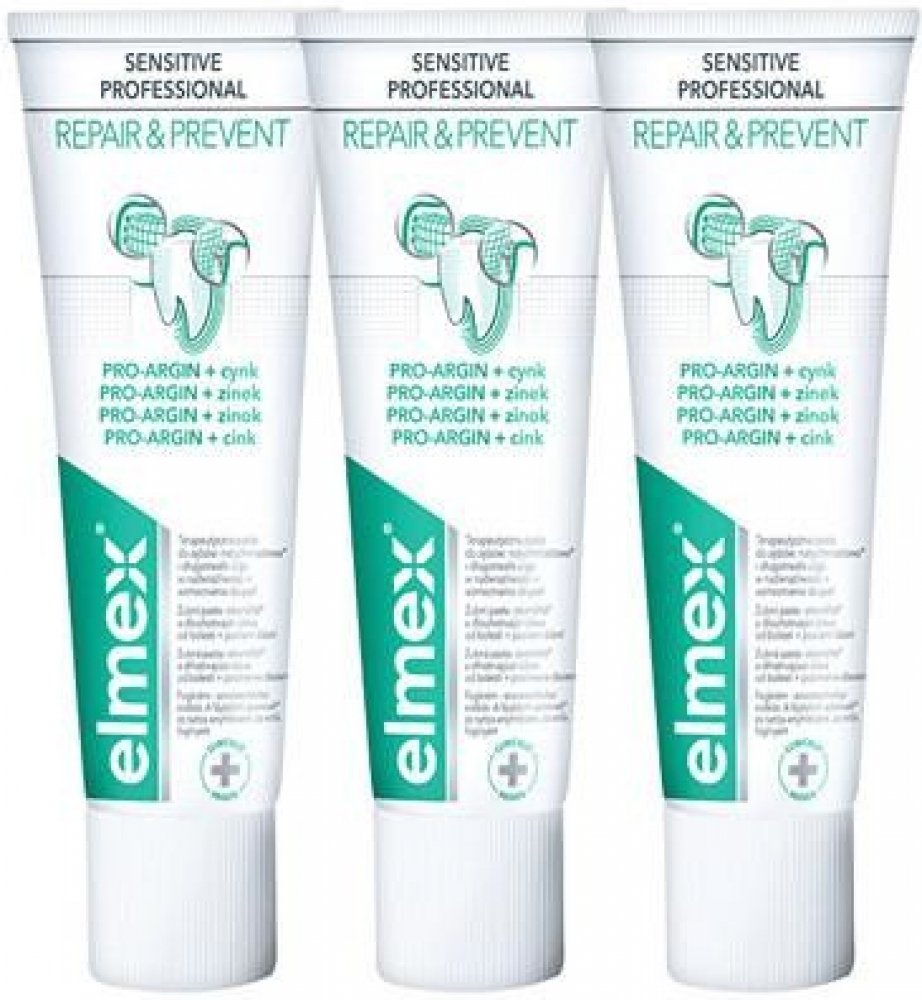 Zubní pasta pro citlivé zuby ELMEX Repair & Prevent je ideálním řešením pro všechny, kteří nevědí jakou zubní pastu pro své citlivé zuby zvolit. Za zvýšenou citlivostí zubů stojí obnažení zubních krčků, a proto je třeba dbát na velmi opatrné a přesto důkladné čištění. Zubní pasta ELMEX Repair & Prevent obsahuje klinicky ověřenou složku PRO-ARGIN, která velmi účně uzavírá dentinové tubuly a tím chr...