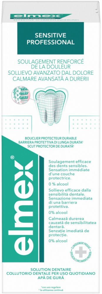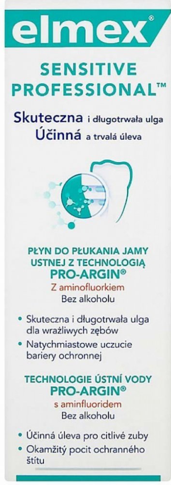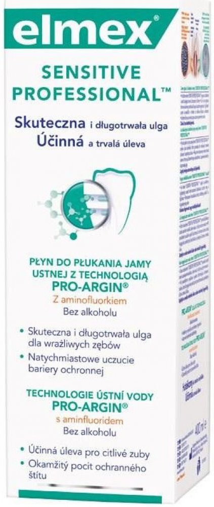 - Elmex® SENSITIVE PROFESSIONAL s technologií PRO-ARGIN® uzavírá kanálky vedoucí k zubnímu nervu, čímž brání vzniku bolesti.