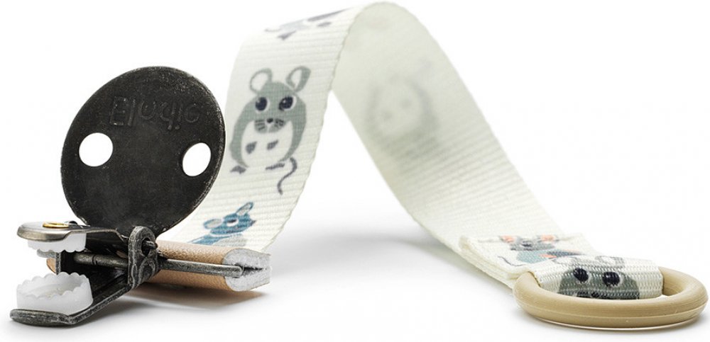 Elastický silikonový kroužek pasuje na většinu dudlíků na trhu a kovový klip bez niklu můžete umístit na kteroukoliv část oblečení.