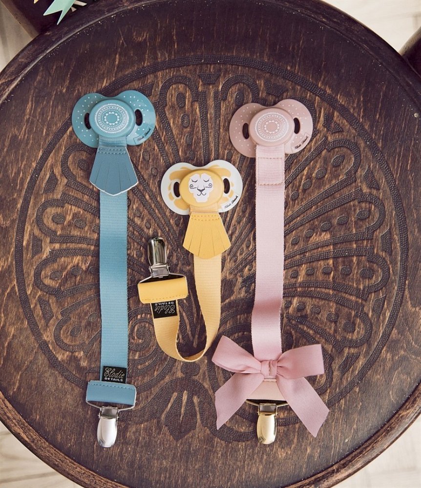 Praktický klips umožňuje připevnění dudlíku ke kočárku, sedačce, oblečení apod. Zabrání upadnutí nebo jeho ztrátě. Silikonový kroužek pasuje na většinu dudlíků, odolný kovový klip je bez niklu. Vyhovuje evropské bezpečnostní normě EN-12586.