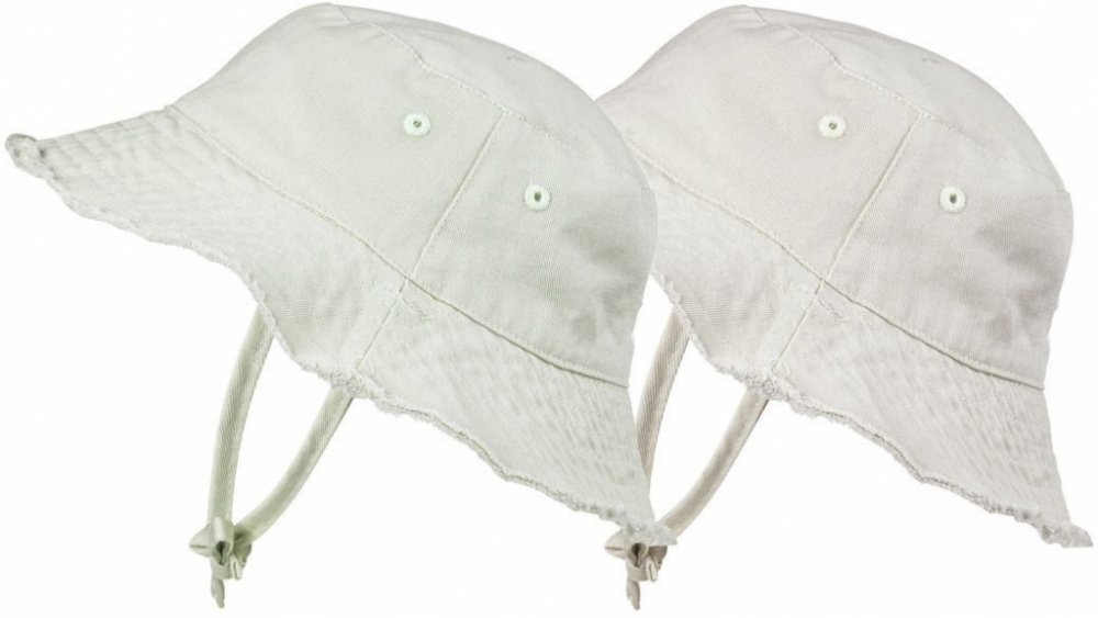 Krásný a pohodlný klobouček z nové jarní kolekce ochrání vaše dítko před sluníčkem. Klobouček má široký okraj, který se dá ohrnout a šňůrky na zavázání pod krkem.Klobouk je oboustranný, z jedné straně je světle zelený a z druhé bílý.