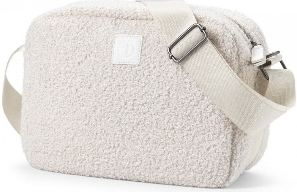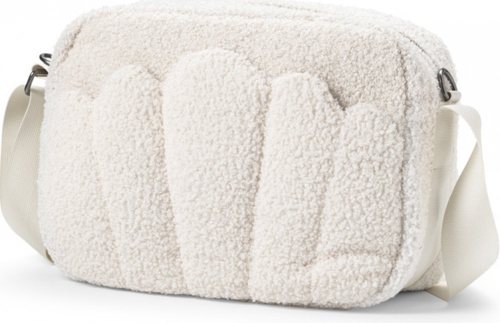 Přebalovací taška z bílého teddy materiálu má spoustu kapes, na mobil, klíče, pleny, vlhčené ubrousky a součástí tašky je přebalovací tašky je i přebalovací podložka a úchyty na kočárek.