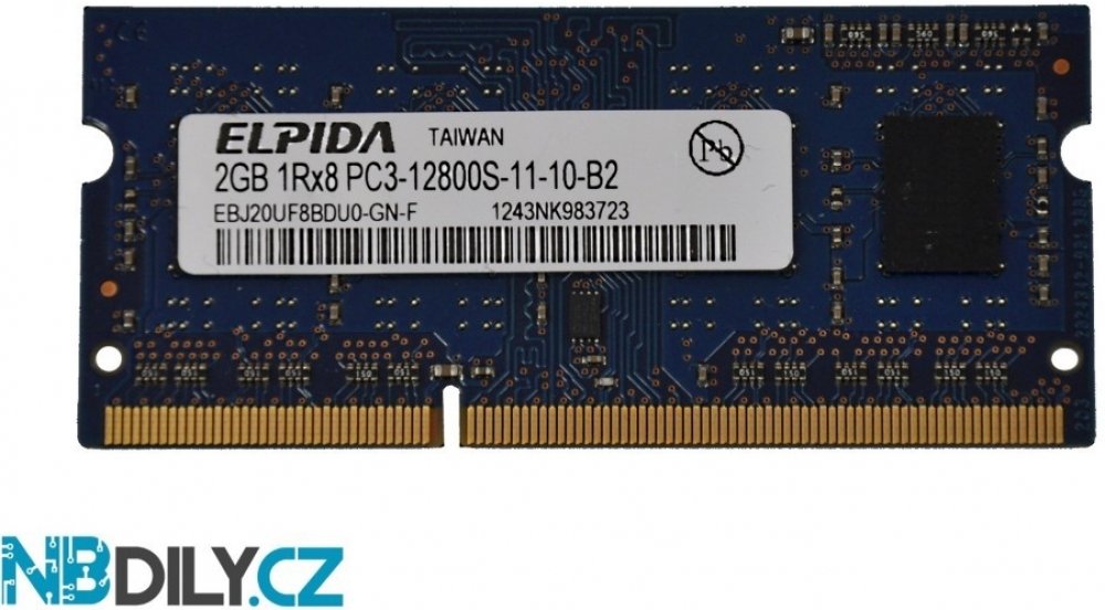 Modelová řada: ELPIDA 2GB 1Rx8 PC3-12800S-11-10-B2 EBJ20UF8BDU0-GN-F