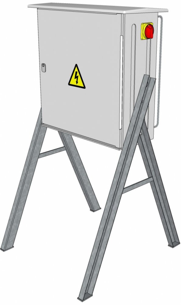 Přenostný staveništní rozvaděč s měřením spotřeby pro připojení krátkodobých odběrů a stavenišť. Jendoduchý elektroměrový rozvaděč pro použití na stavbách a podobných krátkodobých odběrech. Umožňuje odběr ze dvou zásuvek třífázových do 32 A, dvou zásuvek třífázových do 16 A a dvou zásuvek jednofázových do 16 A. Všechny zásuvky jsou jištěny proti nadproudu a ochrana proti nebezpečnému dotyku je zajištěna proudovým chráničem. Celý rozvaděč je vyroben z termosetu vhodného pro venkovní prostředí s dobrými vlastnostmi pro elektrotechniku a s vysokou mechanickou odolností. Pro snazší přepravu a manipulaci je upevněn na kovovém stojánku. Pro bezpečný provoz je vyvedeno uzemnění na pomocnou sondu, která musí být při provozu spojena se zemí! Pro možnost vypnutí v nebezpečí je vybaven vypínačem, které celý rozvaděč (odběrovou část) vypne. Skříň je uzavíraná na čtyřhran 6 x 6 mm. Rozvaděč je schválen EZÚ Praha.
