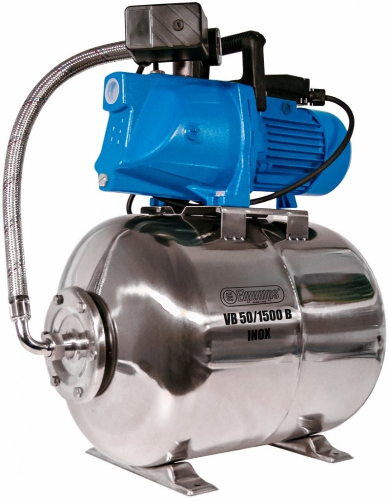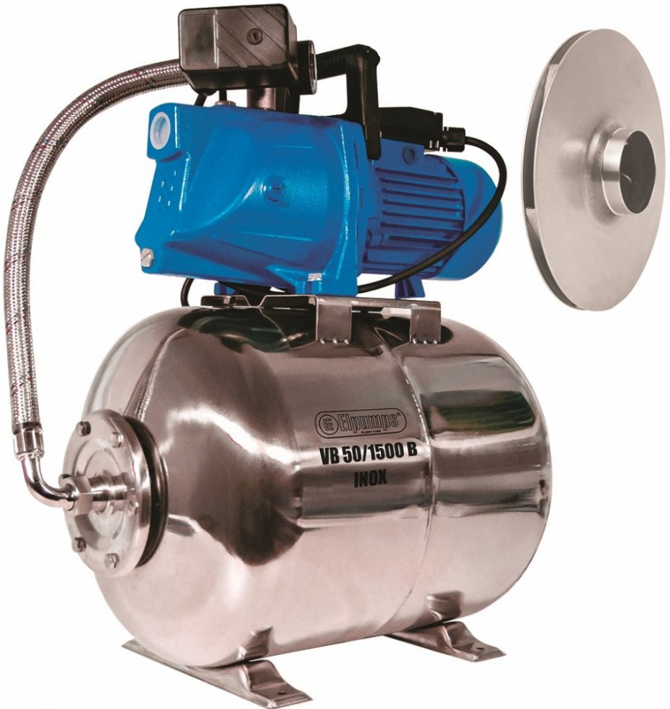 Domácí vodárny ELPUMPS splňují veškeré potřeby zákazníka na zásobování domu nebo zahrady pitnou či užitkovou vodou. Základem bezproblémového chodu a dlouhé životnosti jsou tiché motory o výkonu minimálně 800 W. Pouze takto silné motory mají dostatečnou výkonovou rezervu pro to, aby u nich nikdy nenastalo přetížení či přehřátí, které by mohlo způsobit zničení motoru. Vnitřní i vnější části jsou vyrobeny z antikorozních materiálů. Zákazník může podle potřeb volit mezi tlakovou nádobou o objemu 25 nebo 50 litrů. Kovové opěrné nohy zajišťují dobrou stabilitu stroje. Vodárny je možno dovybavit účinným předfiltrem 1l. Model VBP je osazen čerpadlem s implementovaným předfiltrem o objemu 2 l. Možnosti využití: Po otočení vodovodním kohoutkem vodárna připojená na zdroj vody, nádrž s vodou apod. sama sepne a vytlačí vodu k odběrnému místu. Zajištění domácnosti pitnou nebo užitkovou vodou – zavlažování, wc splachovače, vodovodní baterie, pračky, apod. Podpora vodovodní sítě. Odběr dešťové vody z nádrží, cisteren. Technika: Čerpadlo má samonasávací konstrukci, tzn. při uvedení do provozu je třeba naplnit pouze samotné čerpadlo. Vnitřní konstrukční prvky čerpadla jsou vyrobeny ze speciálního odolného plastu, takže při delším odstavení nehrozí jejich koroze. Skříň čerpadla je vyrobena z litiny nebo speciálního odolného plastu (model VBP). Hřídel čerpadla je utěsněna profesionálním dvojitým těsněním, kombinující pružinové a keramicko-křemíkové těsnění. Modely s označením B mají heavy-duty mosazné oběhové kolo, které má výborné antikorozní parametry, je daleko odolnější vůči abrazivnímu vlivu nečistot (částečky písku ap.) a vydrží bez deformací vlivem tepla i případný běh naprázdno (bez vody). Motor je speciálně hermeticky utěsněn proti vniknutí vody a je chráněn tepelnou pojistkou. Stroje mají nadprůměrnou životnost,protože kromě mechanického těsnění nejsou v těle čerpadla žádné součástky, na které působí otěr. Tlaková nádoba je vyrobena ze silnostěnného plechu (u modelu VBP z nerezu). Uvnitř nádoby je pryžová vystýlka. To zaručuje bezpečnost při provozu a výbornou těsnost nádoby po dlouhou dobu. Nádoba je vybavena přesným tlakoměrem pro kontrolu výstupního tlaku vodárny a hydrokontrolou pro automatické spínání čerpadla.