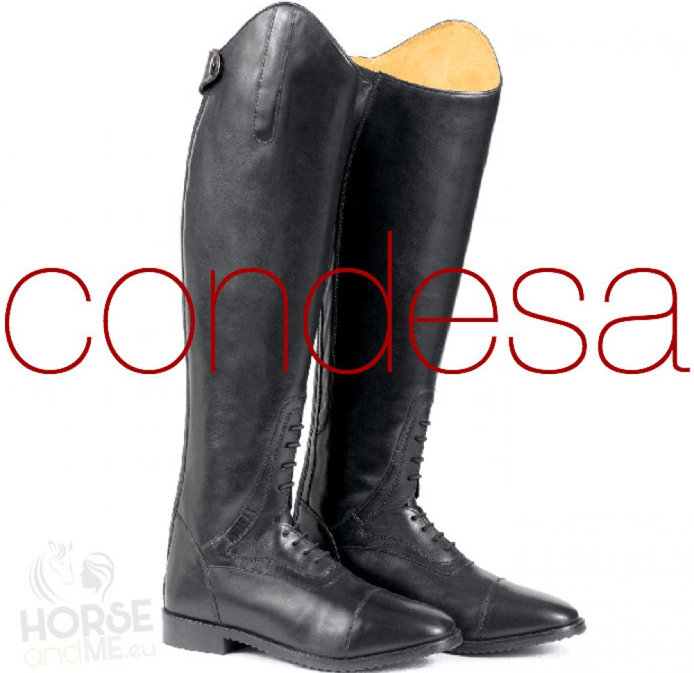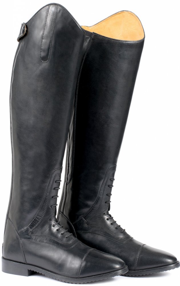 Prémiově zpracované klasické jezdecké boty z velmi kvalitní kůže. Snadné nandavání díky dlouhému zipu na zadní straně lýtka a šňěrování na nártu. Perfektně sedí díky elastickým insertům podél lýtka.