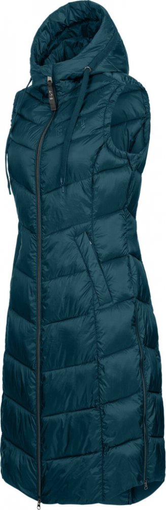 Dlouhá prošívaná vesta s lesklým povrchem je ultralehká, pohodlná a odolná vůči větru i vodě. Vesta je vybavena vnitřní hřejivou výplní, která se podobá peří a dvoucestným zipem s ochranou brady. Po stranách má praktické boční kapsy na zip a jezdecké rozparky s kvalitním kovovým zipem, které zajišťují pohodlný pohyb. Vesta má odnímatelnou kapuci s elastickou šňůrkou, kterou lze připevnit na zádech...