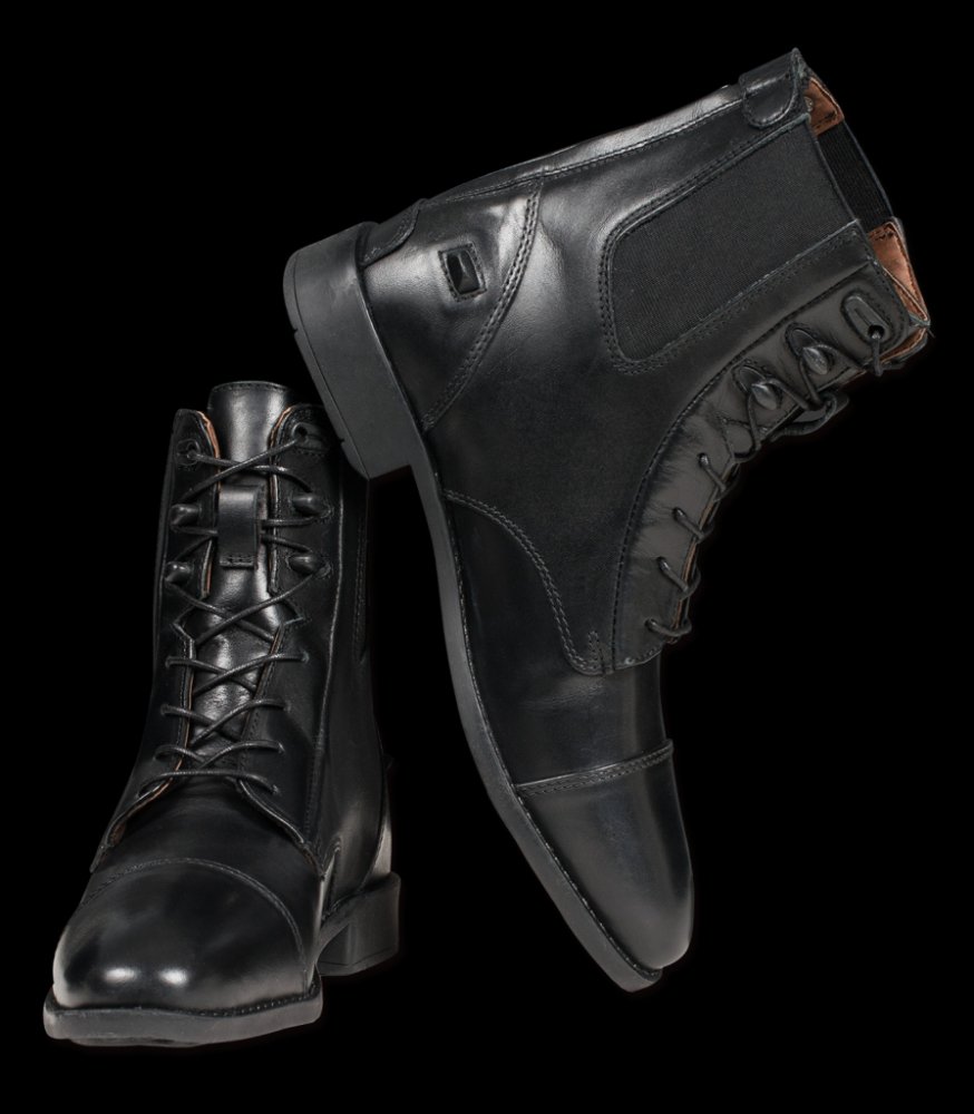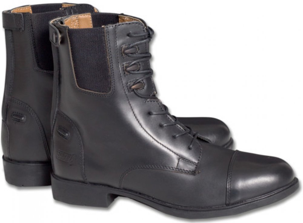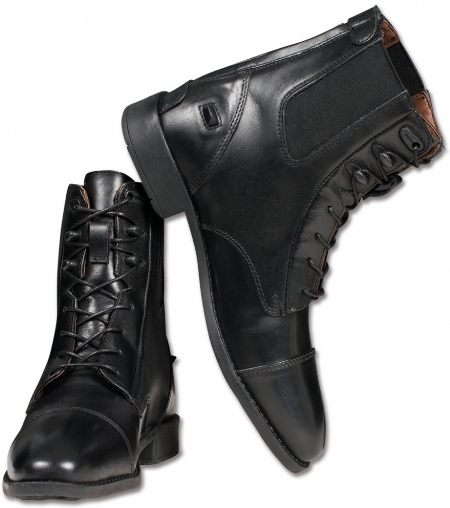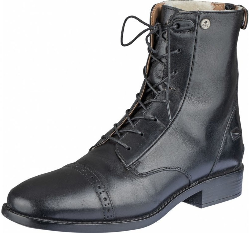 Kožená jezdecká perka značky ELT. Praktické šněrování vpředu pro snadnější zapnutí. Vzadu zip a přezka na cvoček. Pohodlné elastické vsadky a na patě úchyt na šporny.