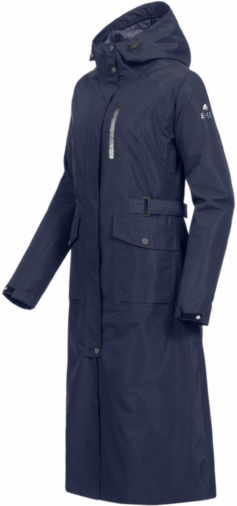 Dlouhá jezdecká pláštěnka, vyrobena z větruodolného a voděodolného materiálu. Voděodolnost 5 000 mm vodního sloupce a prodyšnost 5000 g/m²/24hod. Vybavena je zcela utěsněnými švy a větracími zipy, které zajišťují dostatečnou cirkulaci vzduchu. Pláštěnka je opatřena mikrovláknem na vnitřní straně límce, stahovacími manžetami na rukávech a popruhy pro optimální nastavení šířky v pase. Má praktickou kapuci, kterou je možné použít i s nasazenou helmou, dvě boční kapsy, jezdecké popruhy na nohy a obousměrný zip. Opatřena je reflexními prvky na náprsní kapse, rukávech a ve vnitřní vrstvě, která je vidět po rozepnutí zadních zipů. Zdobena je znakem ELT na rameni a zádech, které jsou též reflexní.