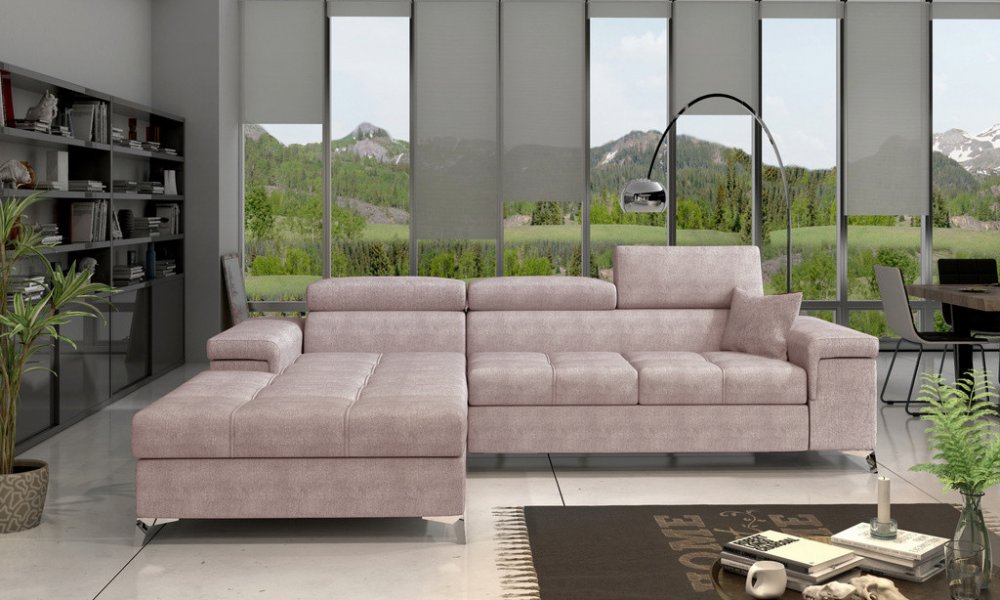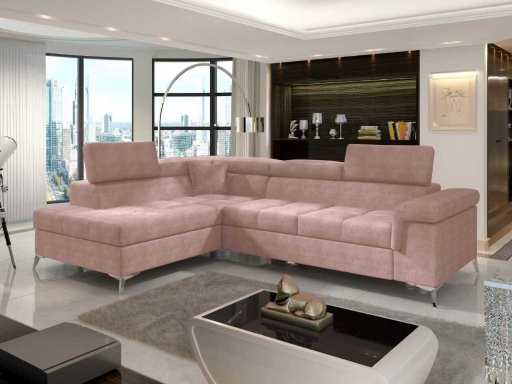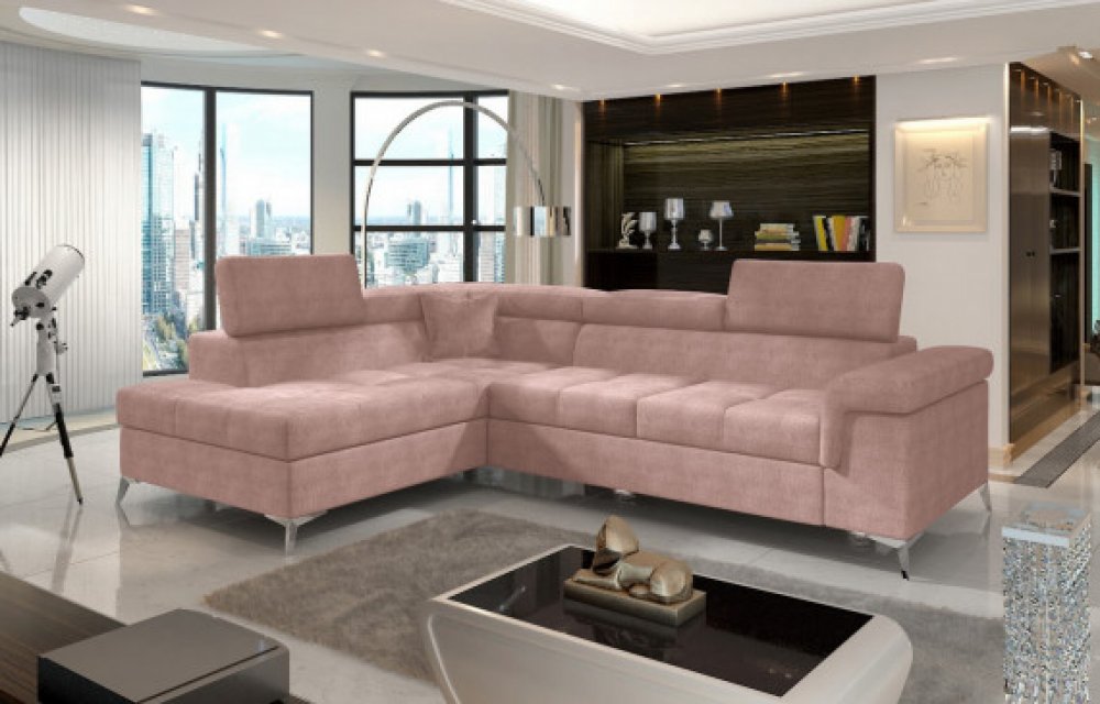 Eltap 160 kg látkové s nožičkami rozkládací s úložným prostorem růžové levý roh 4 moderní 275 cm 202 cm 90 cm