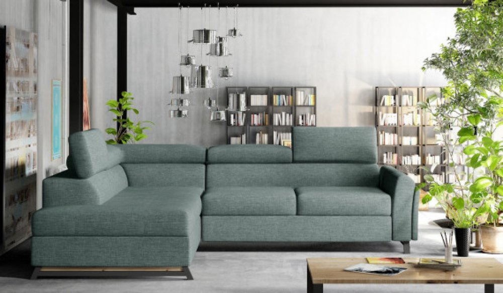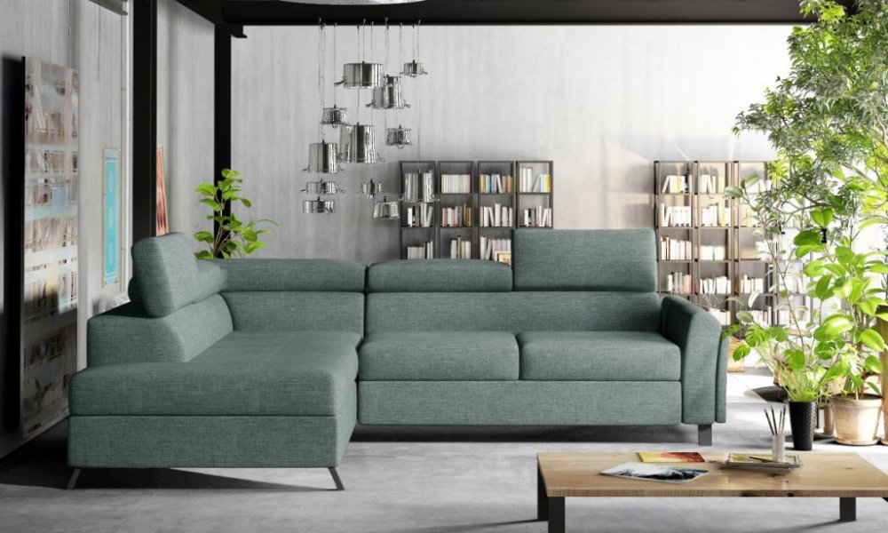 Eltap 155 kg látkové s nožičkami rozkládací s úložným prostorem zelené levý roh 3 elegantní 265 cm 197 cm 95 cm 60 cm 9 cm