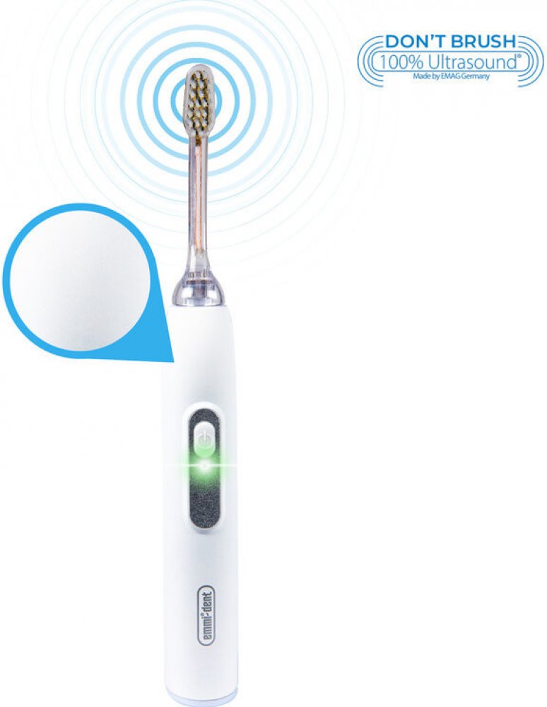 Emmi-dent je jediný zubní kartáček na světě čistící zuby pomocí ultrazvuku. Čištění ultrazvukovou technologie byla dříve prováděno pouze zubaři, jelikož ultrazvuková technologie byla příliš nákladná pro domácí použití. Dnes je však tato jedinečná technologie dostupné pro každého. S více než 84 milionů ultrazvukových vln za minutu zajišťuje kartáček Emmi-Dent velmi čisté zuby a dásně a dokonale svěží pocit. Emmi-Dent účinně odstraňuje bakterie ze skloviny a dásní a dokonce čistí až 12 mm do tkáně, což je zcela unikátní fakt a lze tak bakterií a tím i zánětů zbavit i místa pod povrchem, jako jsou kapsy a záněty dásní.