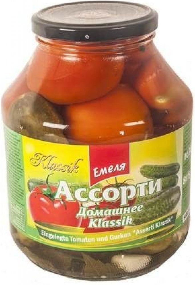 Složení: rajčata 40%, okurky 17%, pitná voda, cukr, jedlá sůl, regulátor kyselosti: kyselina octová, vinné listy, feferonky, česnek, kopr, černý pepř.