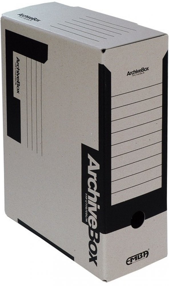 Archive box na formát A4. Vysoká ověřená kvalita zabraňuje praskání. Potisk sítotiskem v barvách červená, zelená, modrá, bílá a černá usnadňuje třídění a orientaci v dokumentech. Vyrobeno z hladké lepenky Standard. Provedení v šířce hřbetu 110 mm, k dispozici i hřbet 75 mm Certifikováno FSC, 330 x 260 x 110 mm.