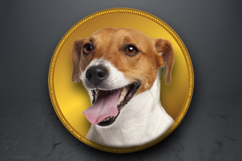 Kovové grafické logo "Jack Russel Terier" GL321 o průměrech 25 a 50 mm.