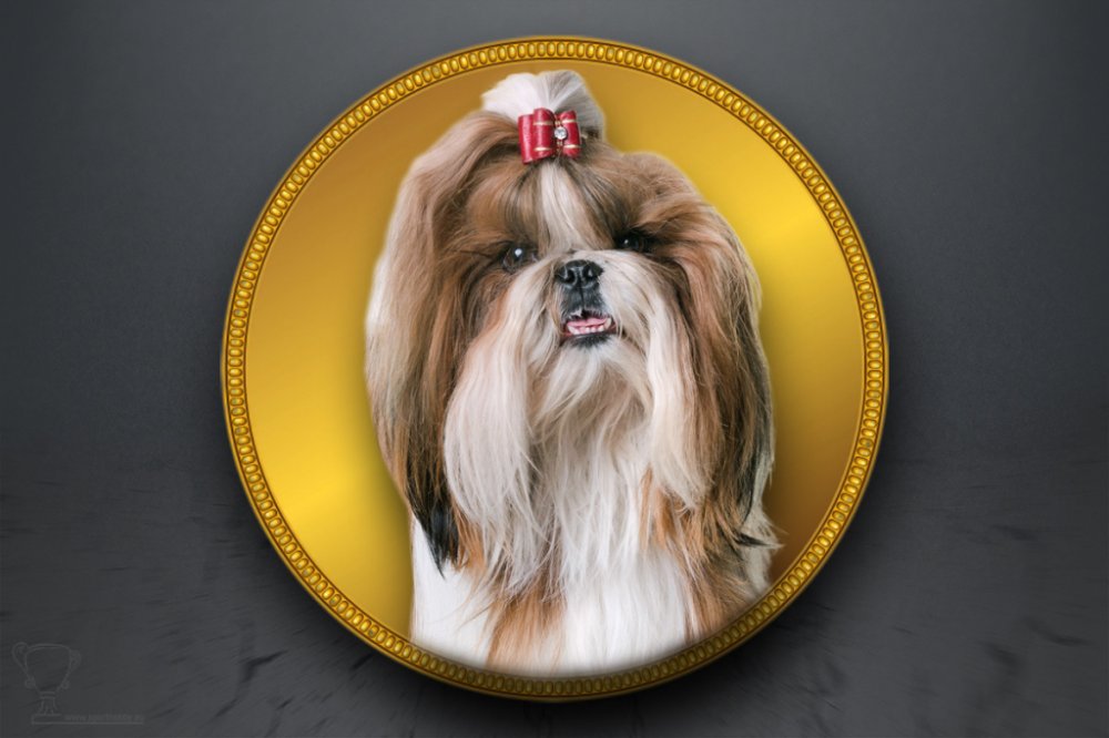 Kovové grafické logo Emblém "Shih-tzu" GL387 o průměrech 25 a 50 mm.