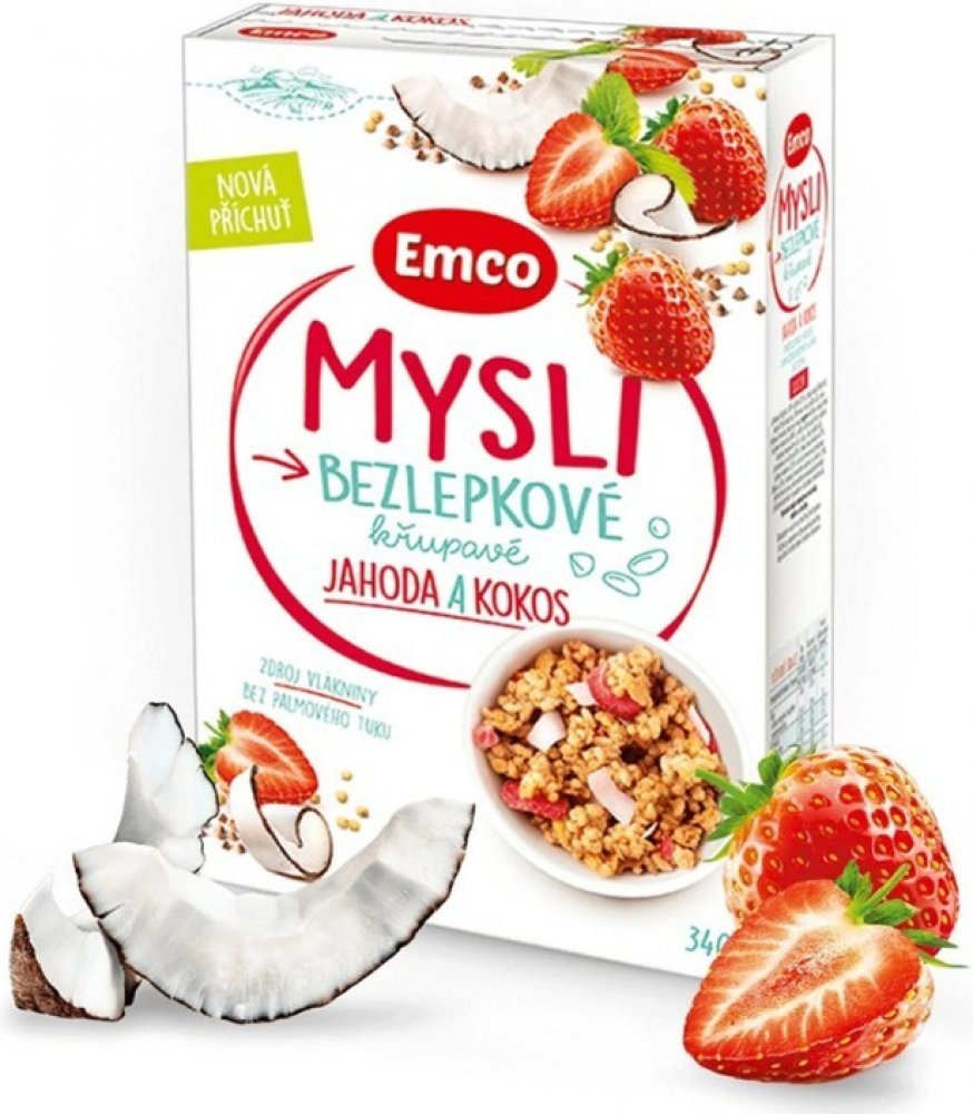 Naše nabídka bezlepkových křupavých mysli od společnosti Emco obsahuje mysli jahoda + kokos a čokoládové duo.