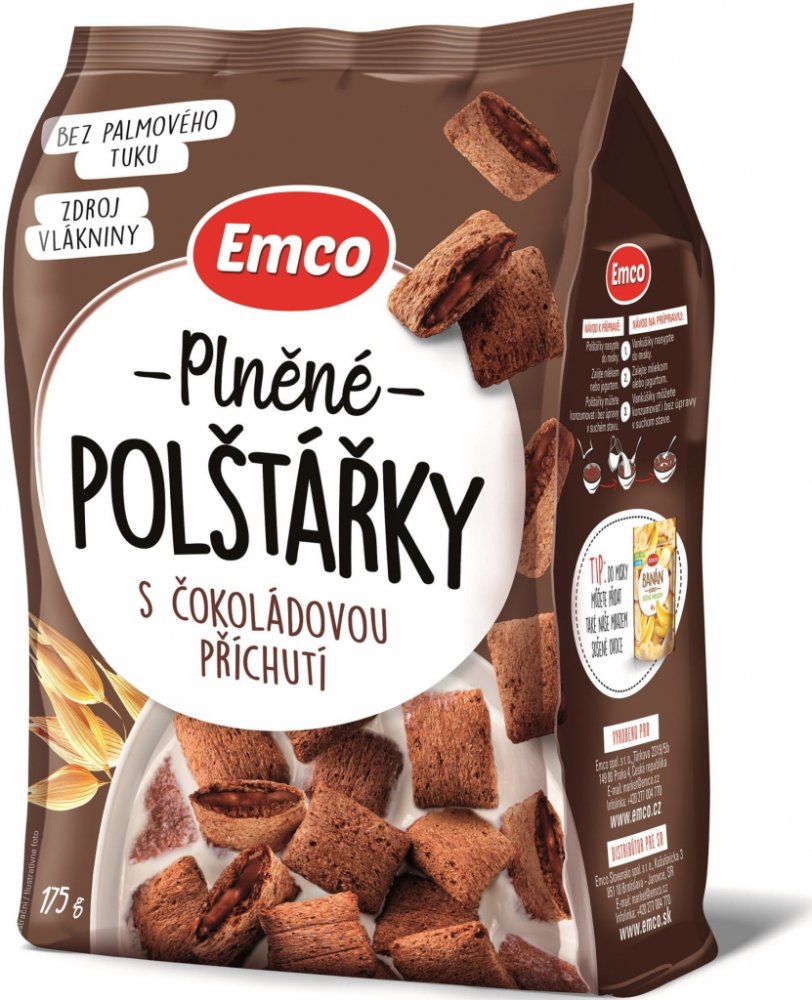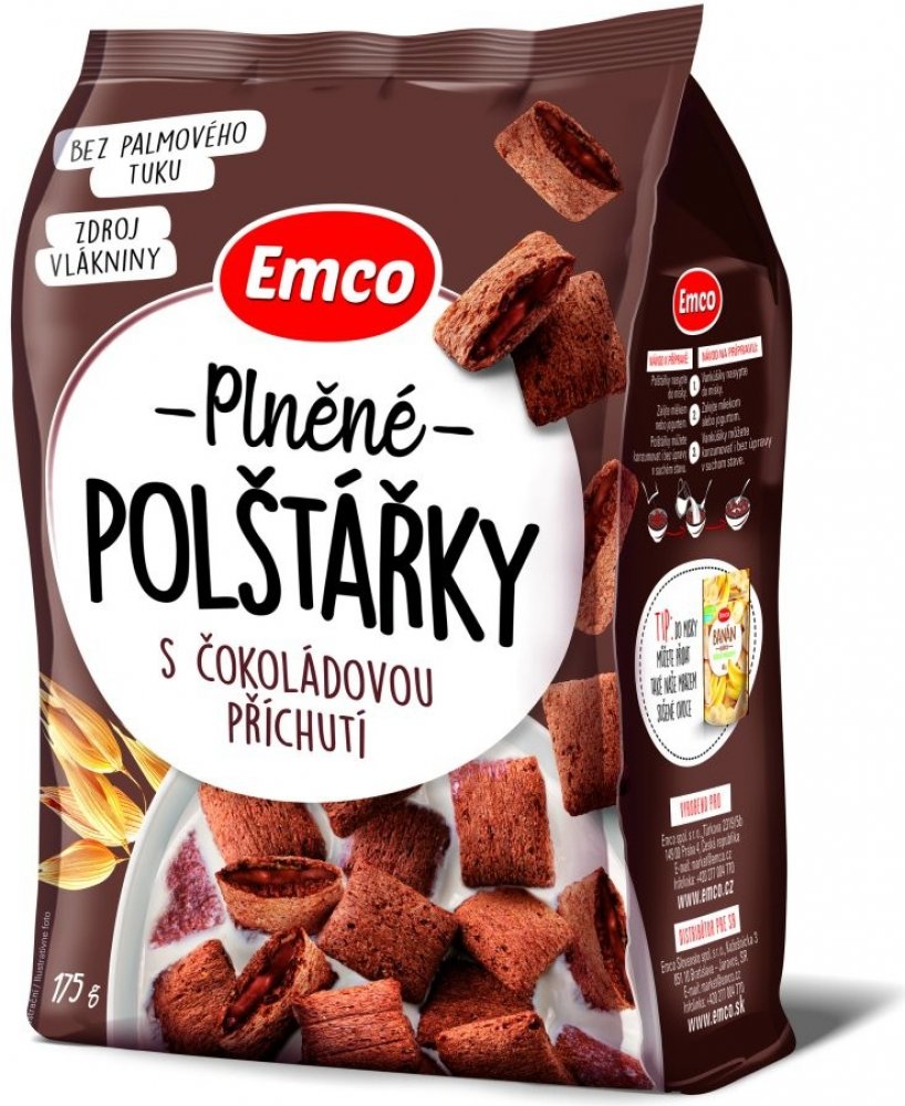 Emco Plněné polštářky s čokoládovou příchutí 175 g