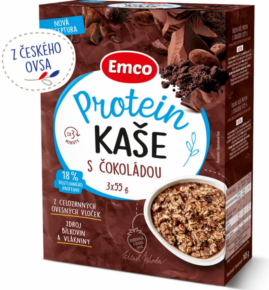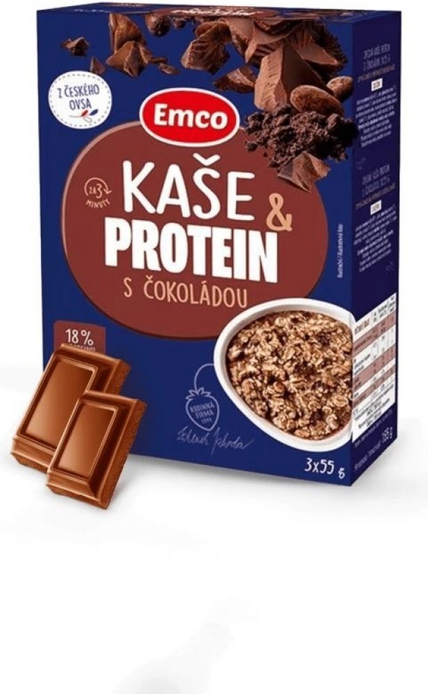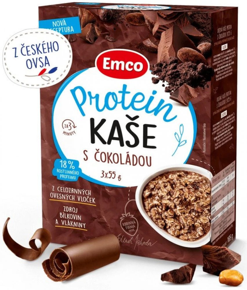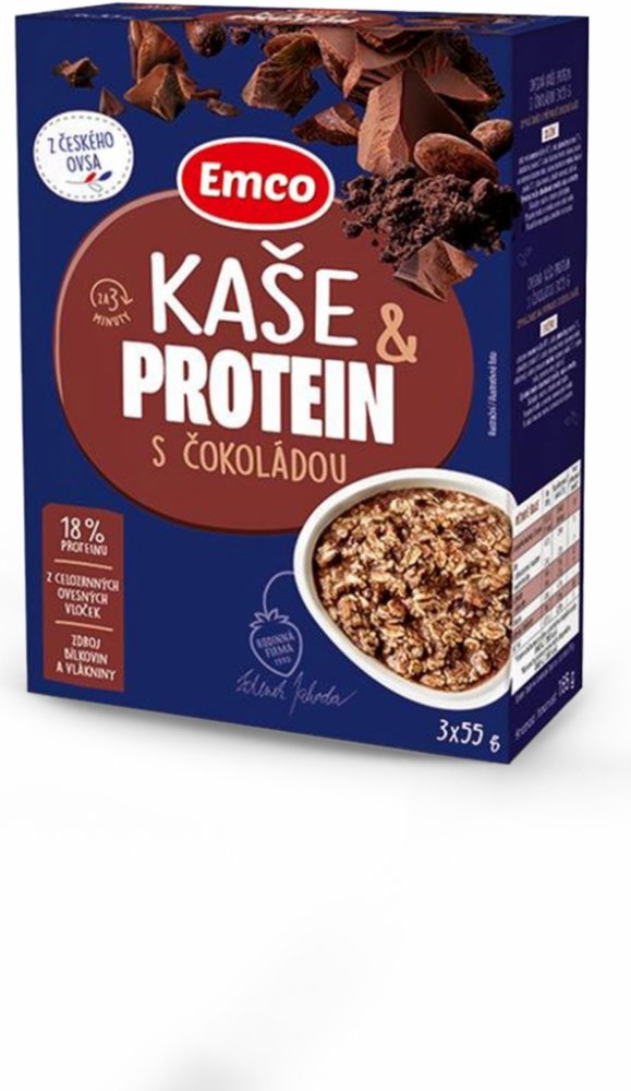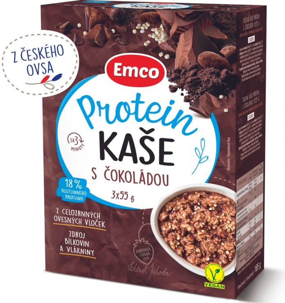 Emco 165 s vysokým obsahem bílkovin s vysokým obsahem cukru v prášku – více porcí 612.15 kcal 14.19 g Celozrnné ovesné vločky, cukr, pšeničný protein oves