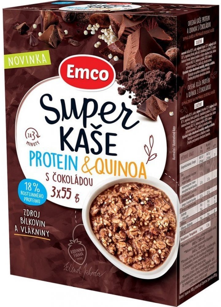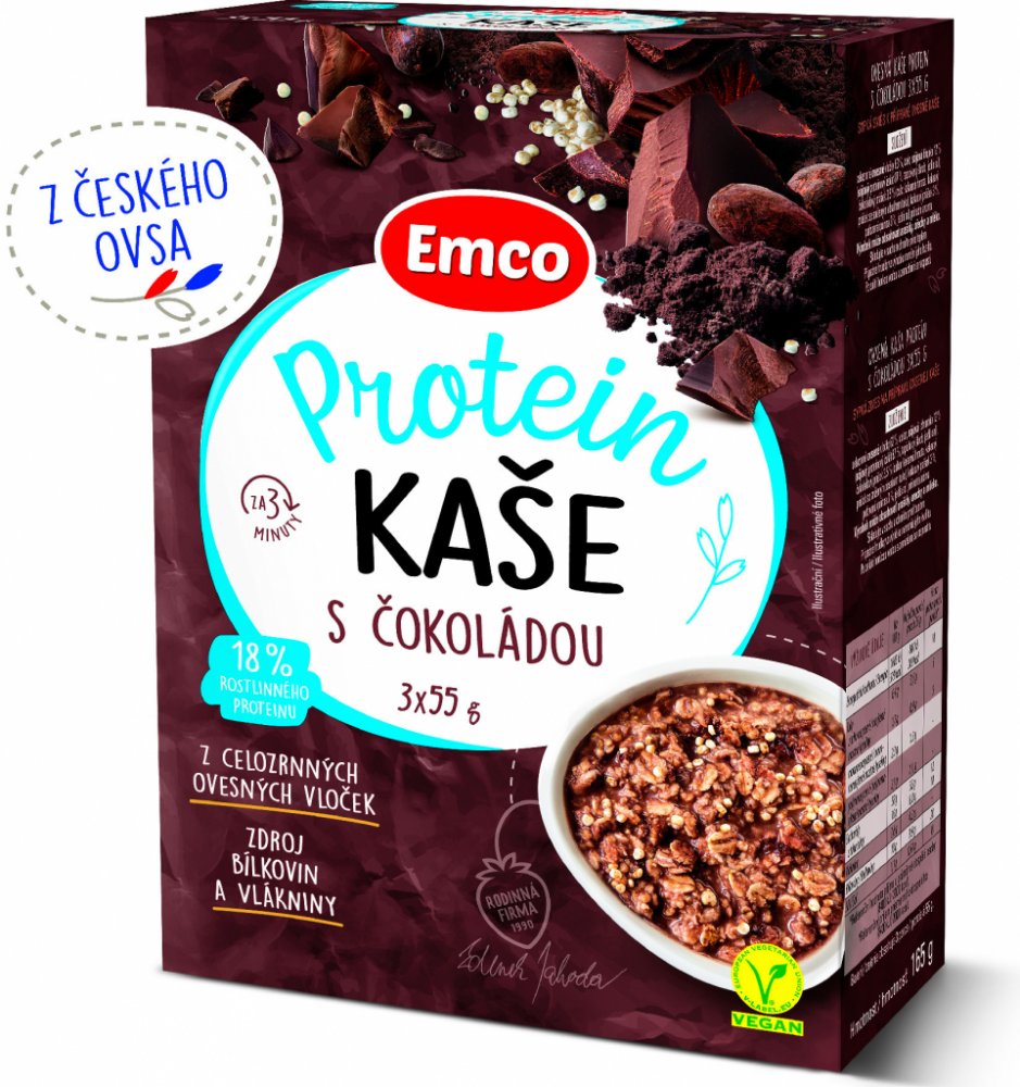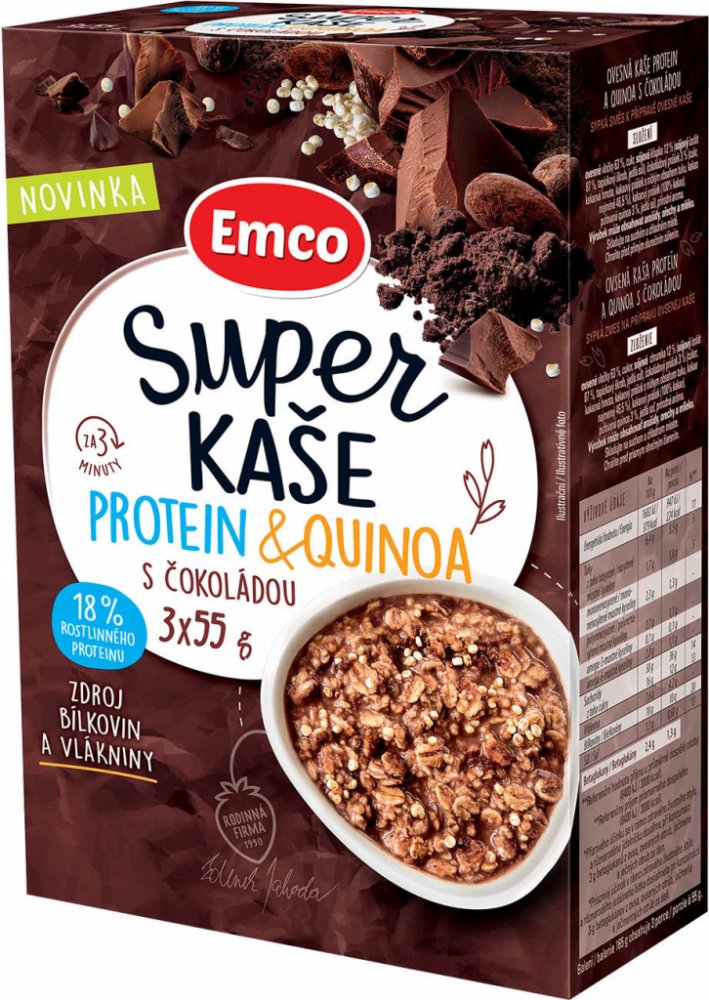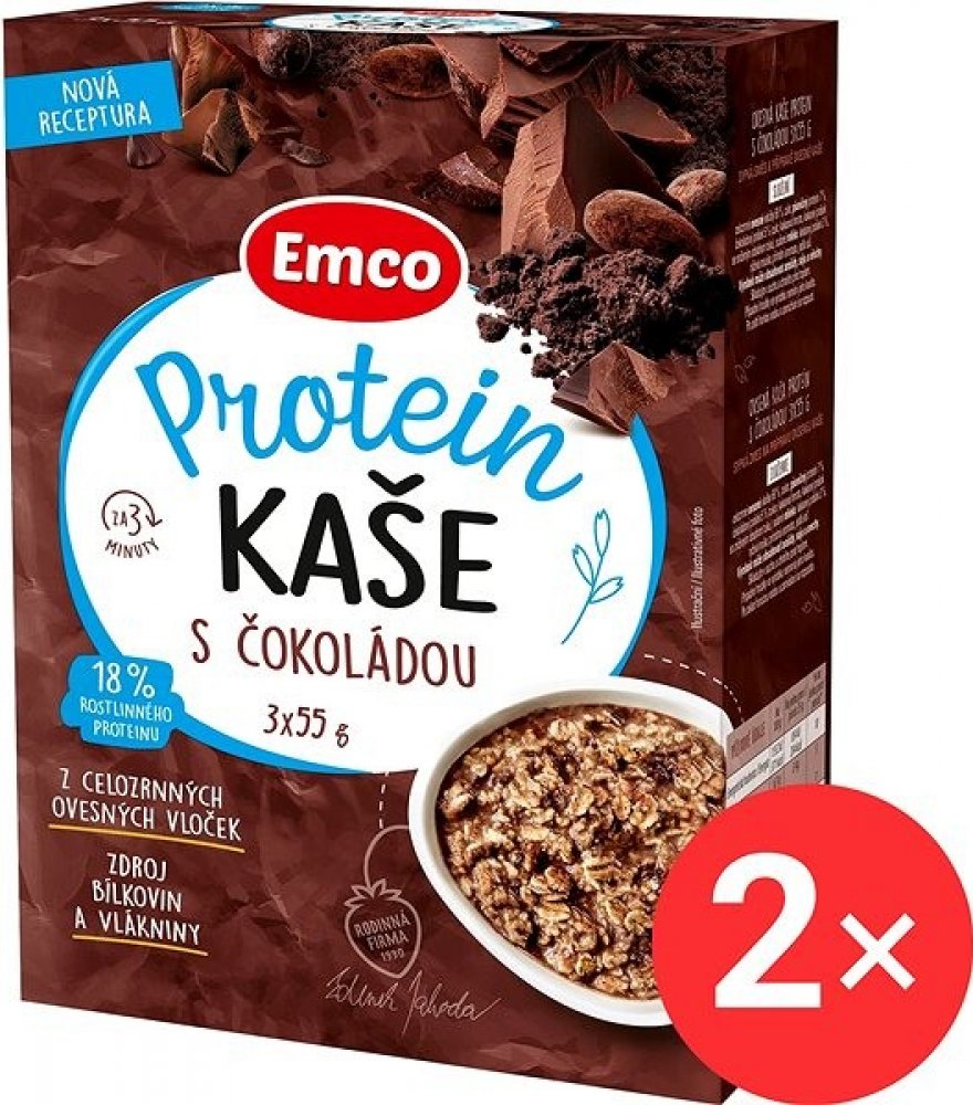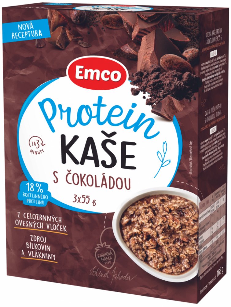 Emco 165 s vysokým obsahem bílkovin s vysokým obsahem cukru v prášku – více porcí 612.15 kcal 14.19 g Celozrnné ovesné vločky, cukr, pšeničný protein oves