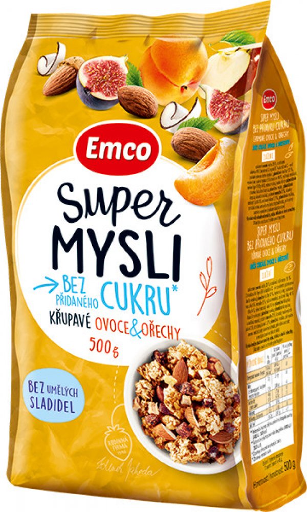 Super mysli bez přidaného cukru s ovocem a ořechy ( Směs cereálií, ovoce a ořechů, 500 g)