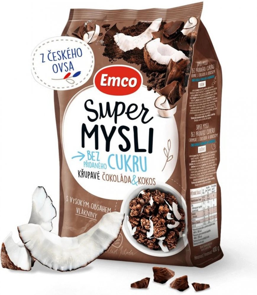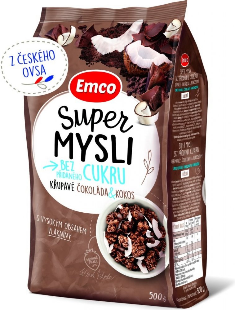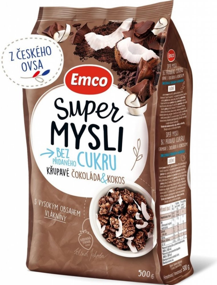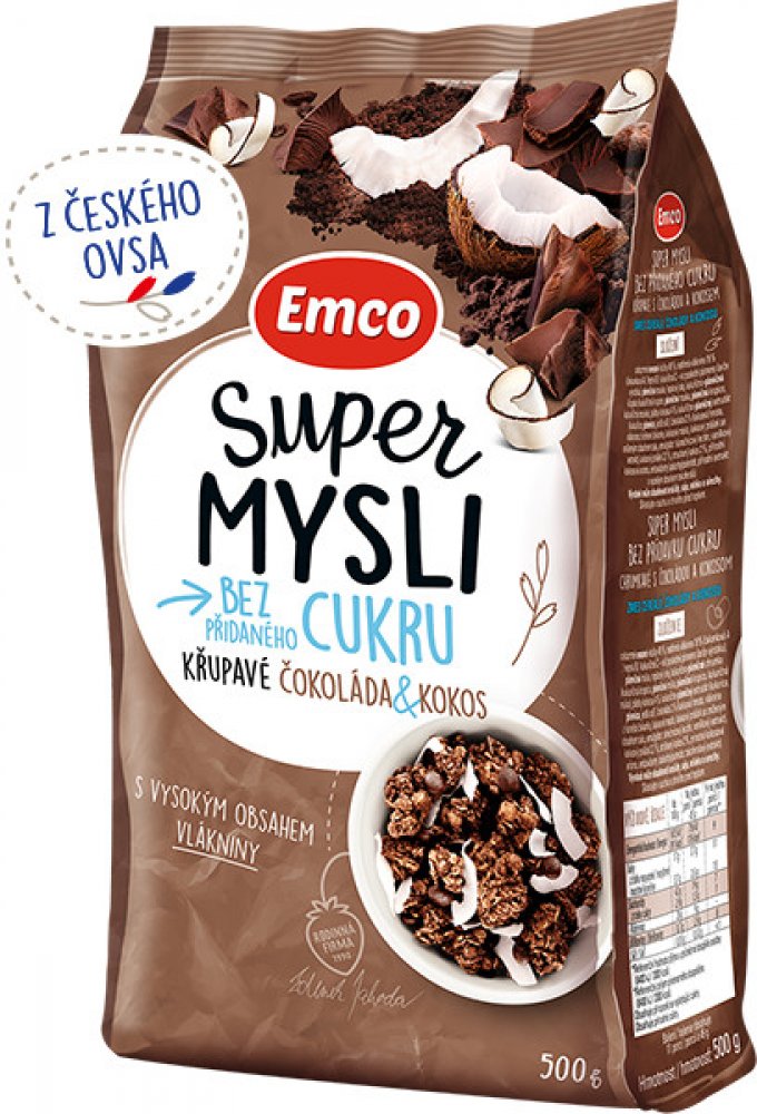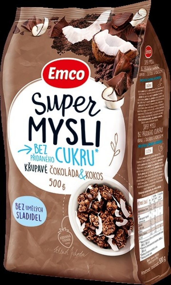 Emco Super mysli bez přidaného cukru čokoláda kokos 500g